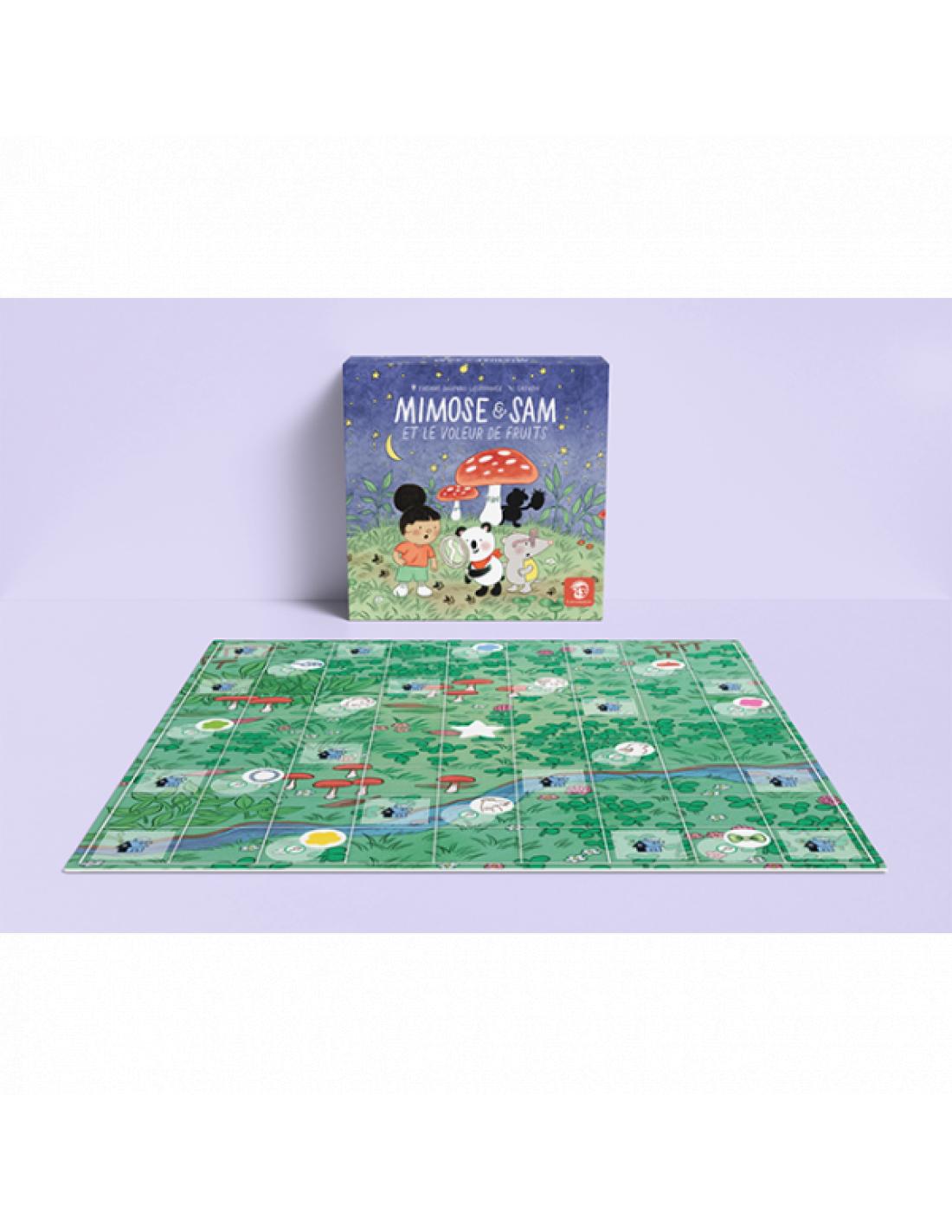 Nos amis Mimose et Sam sont une fois de plus appelés en renfort afin de démasquer le ou la coupable. Mimose & Sam et le voleur de fruits est un jeu de déduction facile d’accès de type “un contre tous” pour les jeunes enfants comme les adultes.