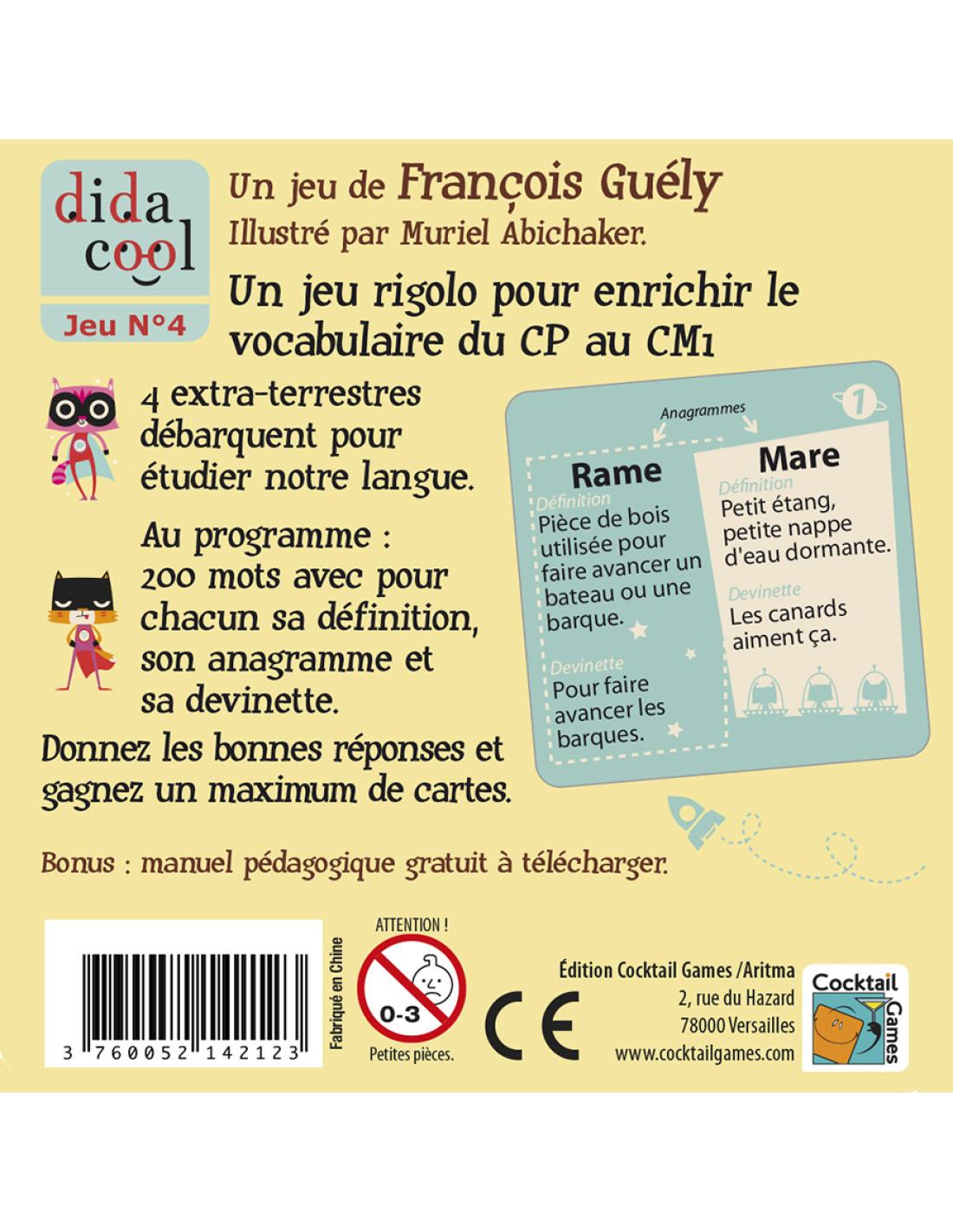 Dans ce jeu de cartes, 4 personnages extra-terrestres permettent de travailler avec enthousiasme et intérêt .