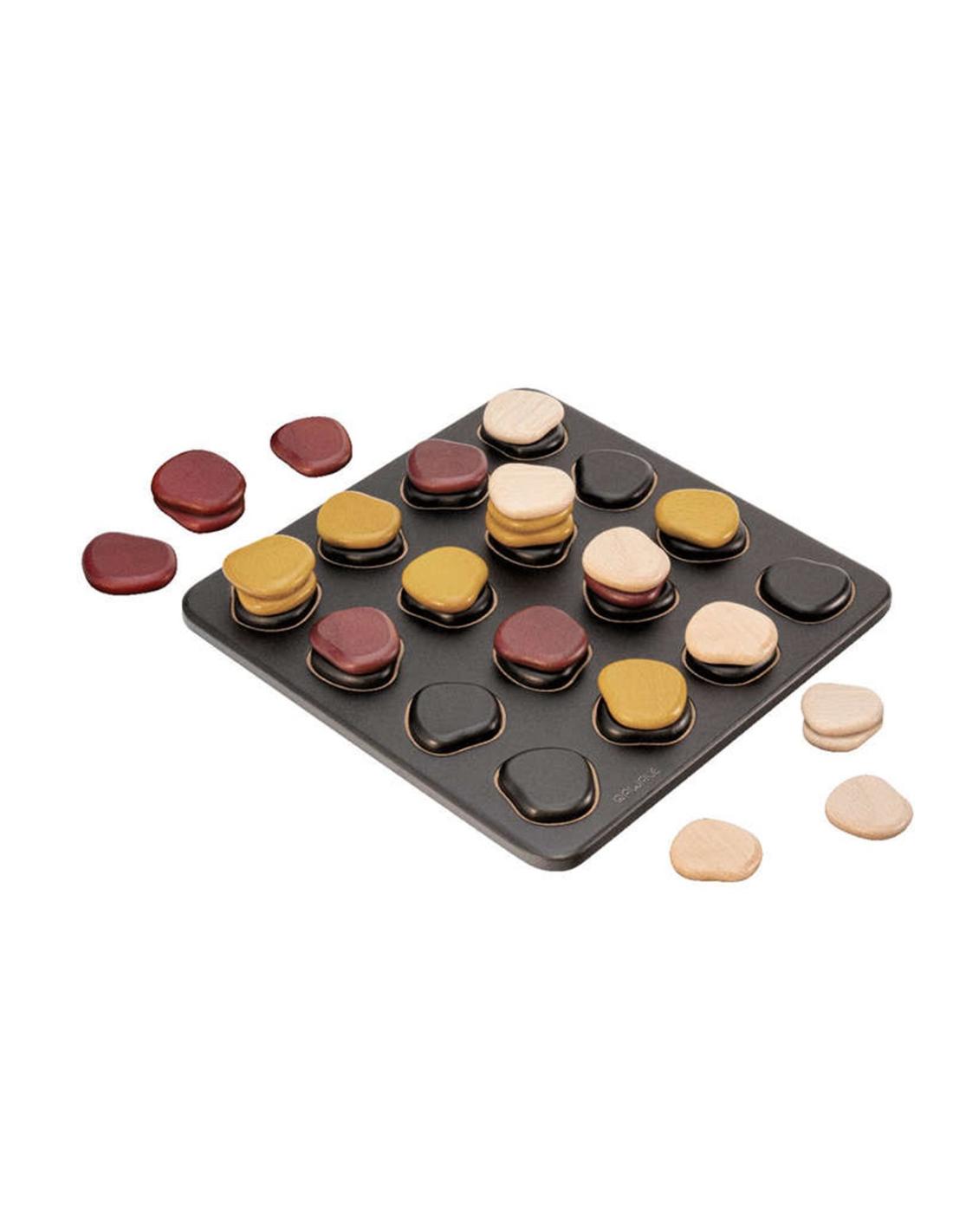 Simple et tactique à la fois, Qawale trouve son inspiration dans les piles de galets que l'on trouve au bord des chemins. À l'image de ces pierres qui voyagent, placez un galet au sommet d'une pile avant de l'égrener sur les cases du plateau. Formez une ligne de 4 galets à votre couleur pour remporter la partie.