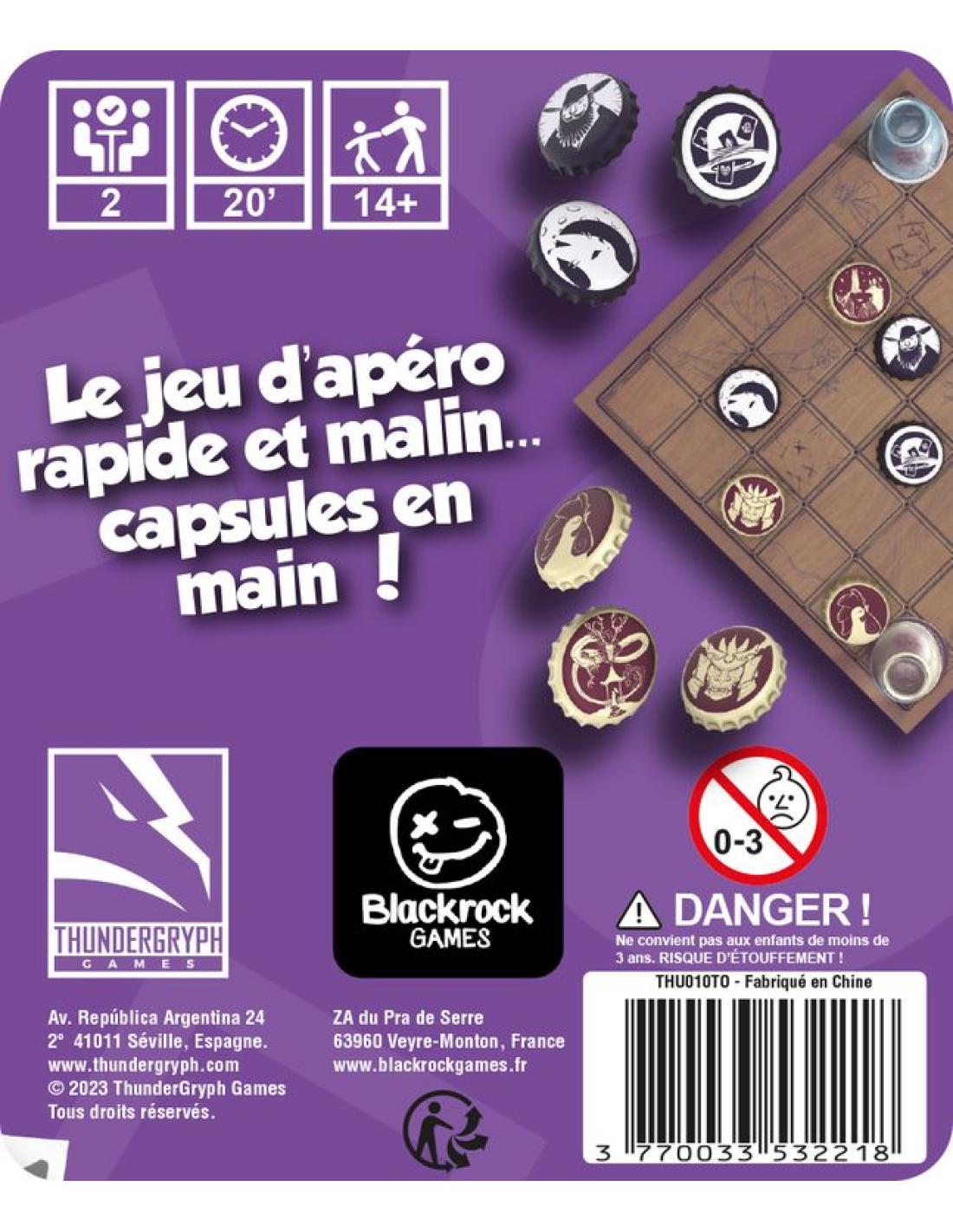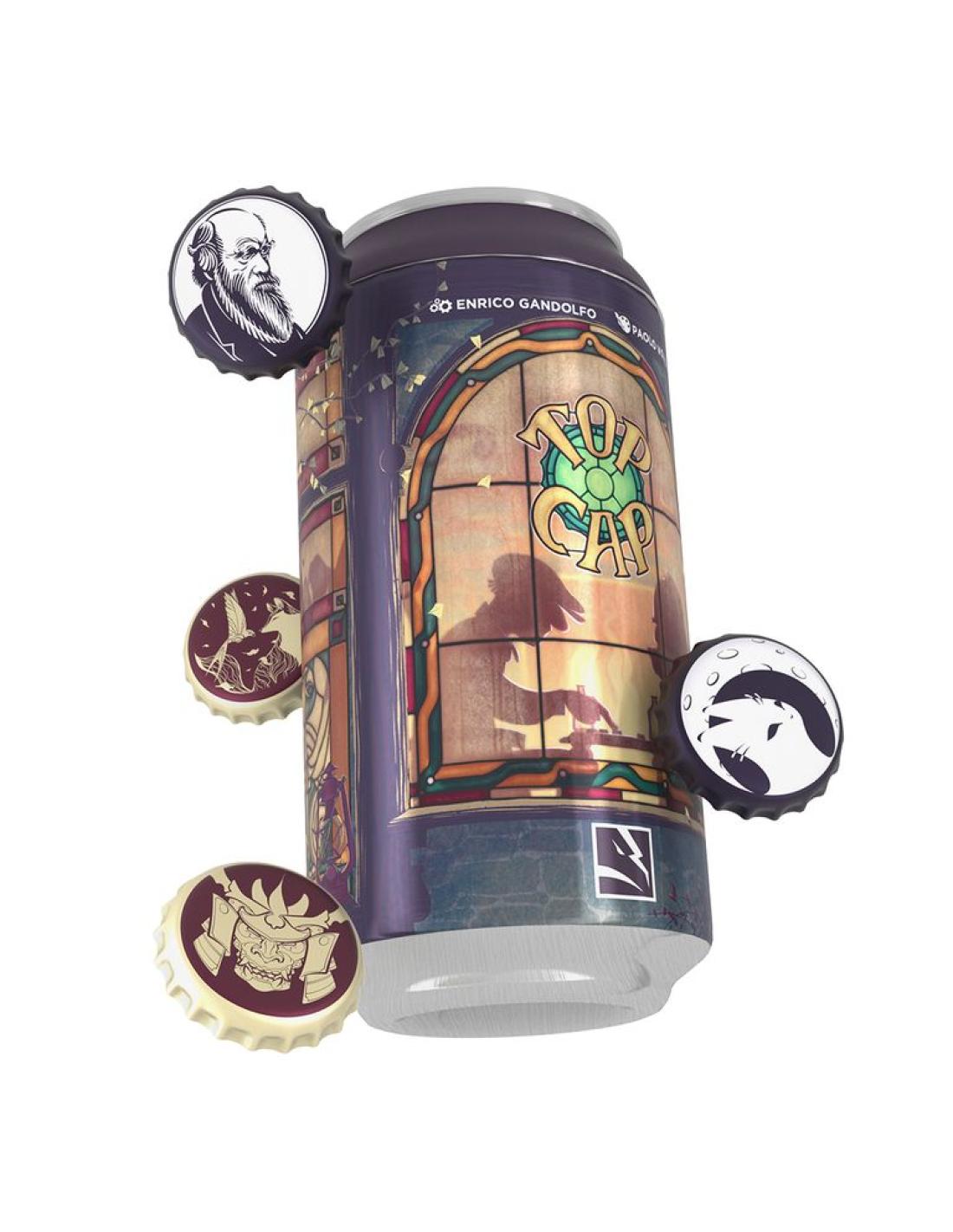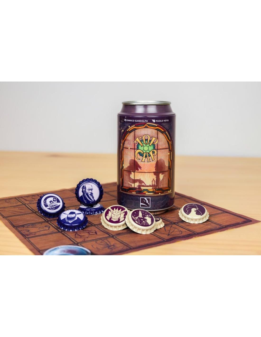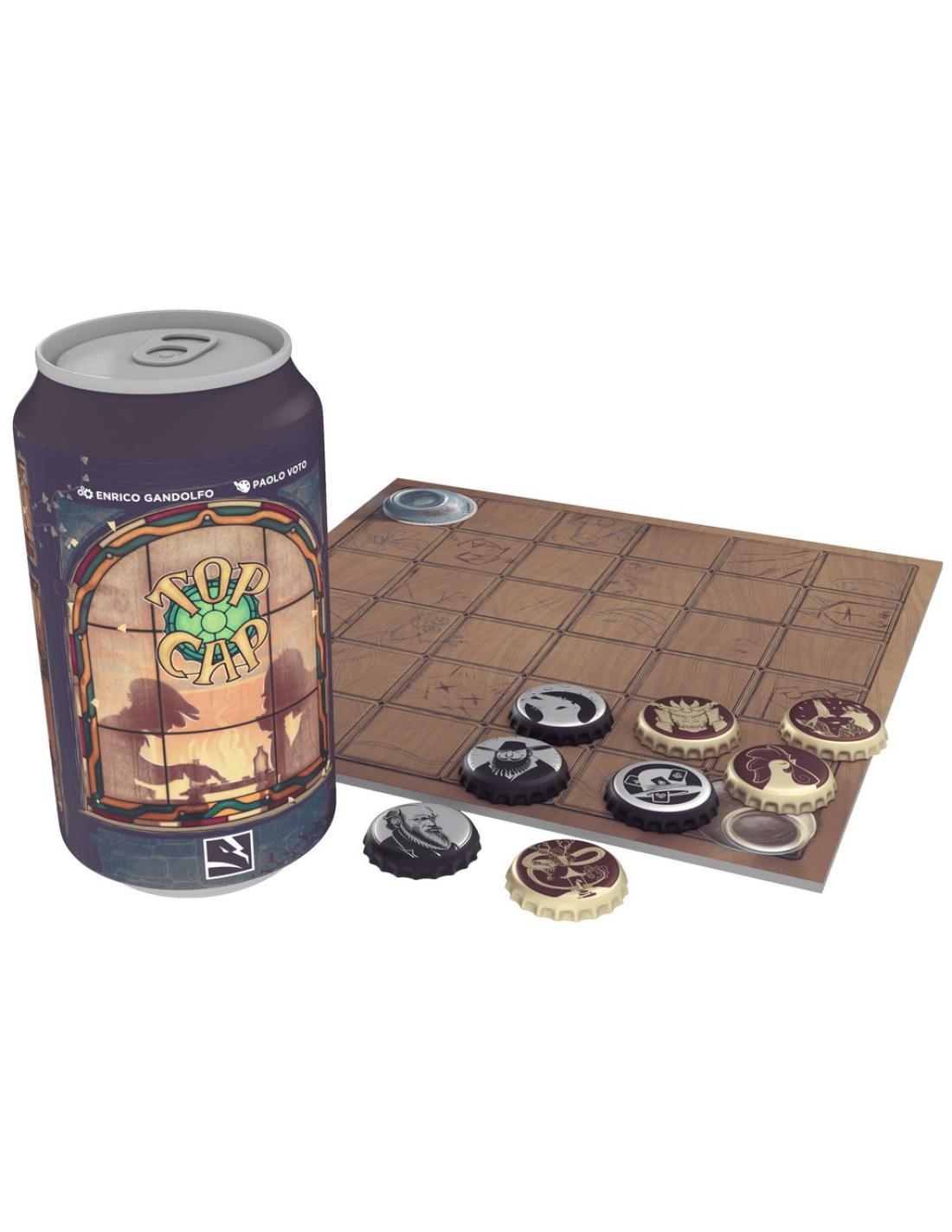 Top Cap est un jeu abstrait de déplacement dans lequel chaque capsule se déplace en fonction du nombre de capsules qui leurs sont adjacentes. Si vous parvenez à positionner une capsule sur la case bouteille de votre adversaire, vous remportez la partie.
