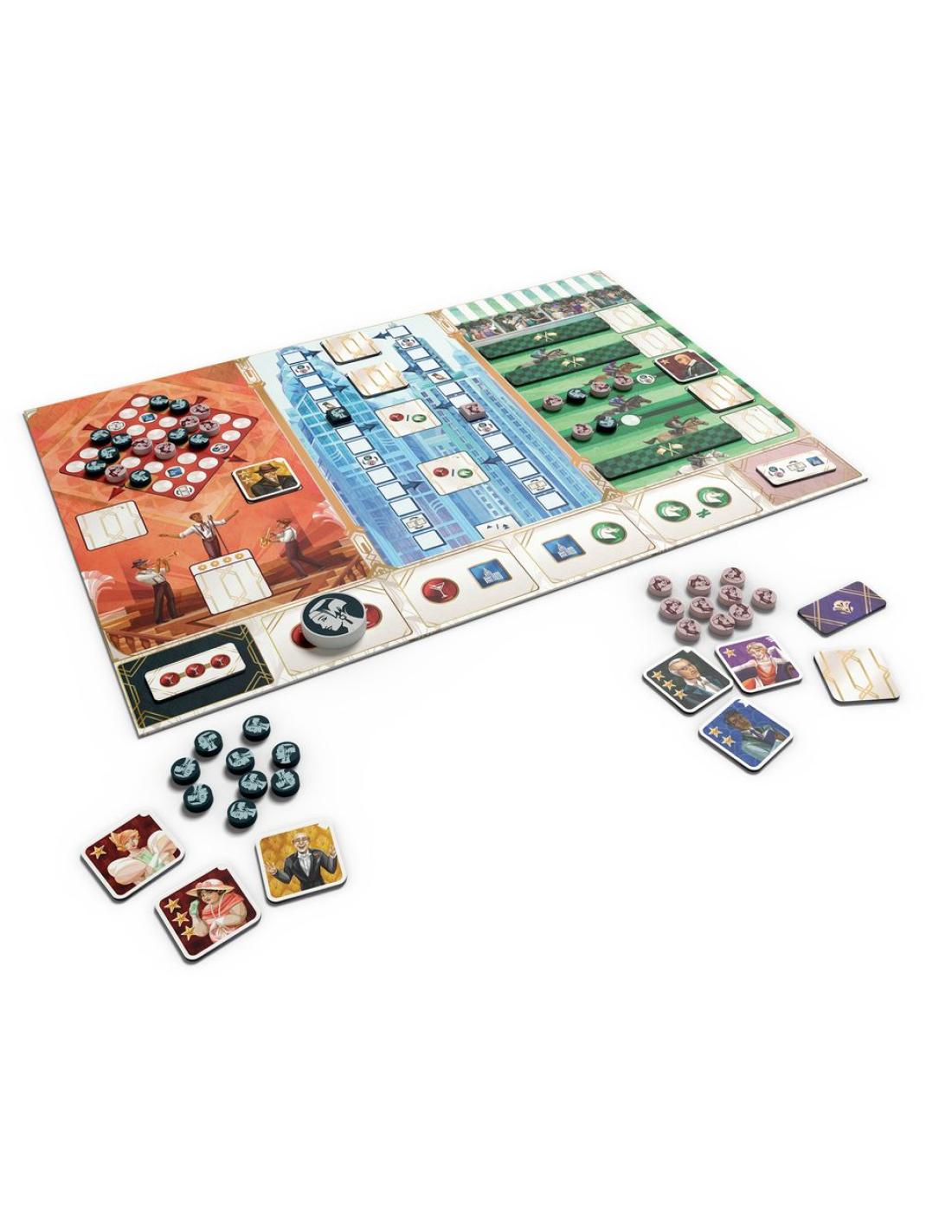 Chacun votre tour, votre adversaire et vous utilisez l'une des 4 actions disponibles pour tenter de recruter les personnages répartis dans 3 lieux : le Cabaret, le Centre financier et l’Hippodrome. Chaque lieu offre un défi différent : créez des connexions sur la piste de danse du Cabaret, gravissez les étages du Centre financier, ou remportez la majorité sur les pistes de l’Hippodrome.