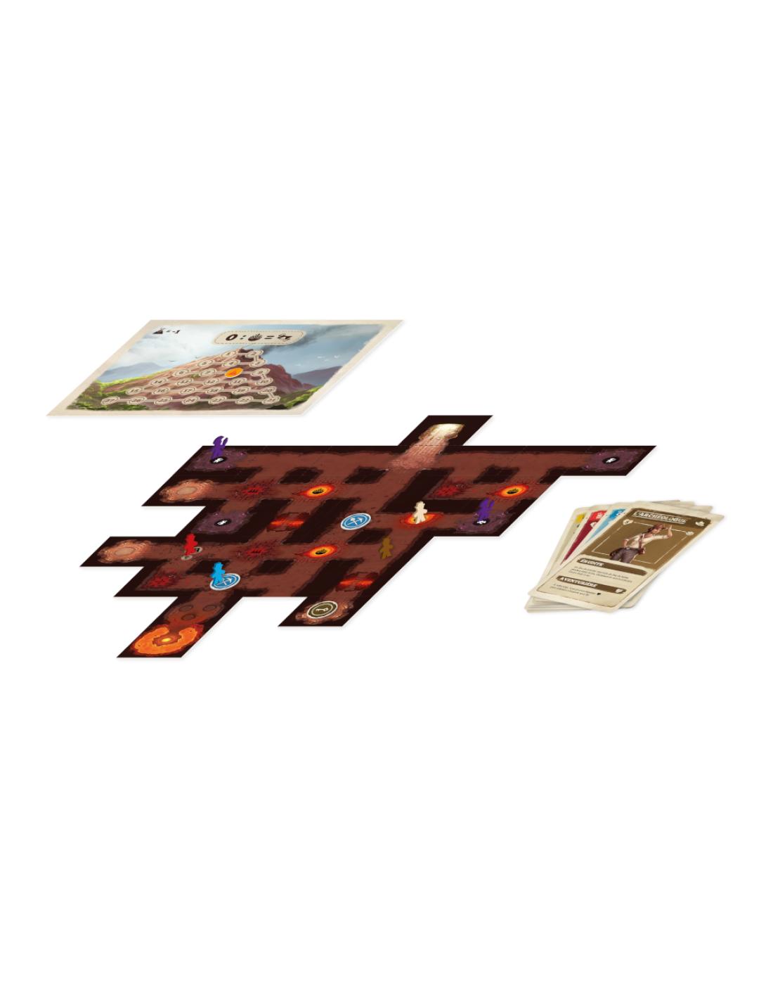 Les habitants se méfient des étrangers et prétendent ne rien savoir du temple perdu que vous cherchez. Mais un jeune villageois, voulant vous impressionner, vous propose de vous guider vers d’étranges ruines sur la Montagne. Vous le suivez et atteignez finalement une porte de pierre gravée dans la falaise. Les inscriptions parlent de feu, de danger, de sang. Vous ne leur prêtez aucune attention et ouvrez le passage vers les profondeurs du volcan ».