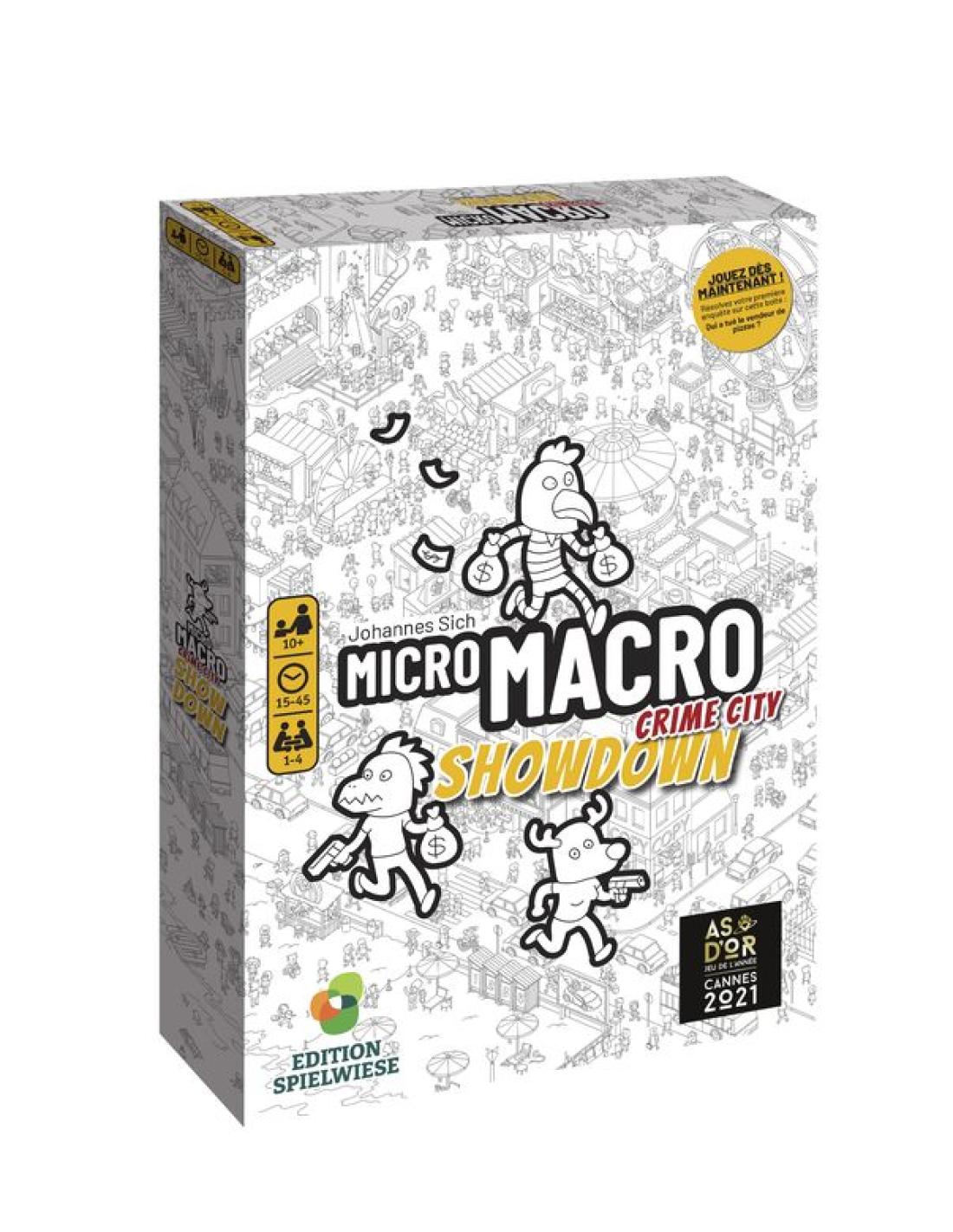 Showdown est le quatrième volet de la série MicroMacro. Venez y découvrir une nouvelle partie de la ville, avec ses 16 enquêtes inédites et plus corsées à mener. Ce jeu est indépendant des premiers volets : il n‘est pas nécessaire de posséder ou d‘avoir joué aux épisodes précédents pour vous lancer dans ces nouvelles affaires !