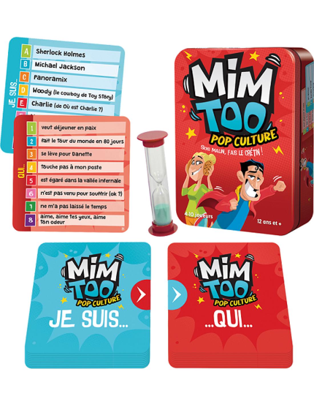 Mimtoo Pop culture est LE jeu de mimes coopératif qui vous entraîne au bout de la nuit : jouez tous ensemble en 15 minutes et tentez de (faire) deviner le plus de cartes possibles !