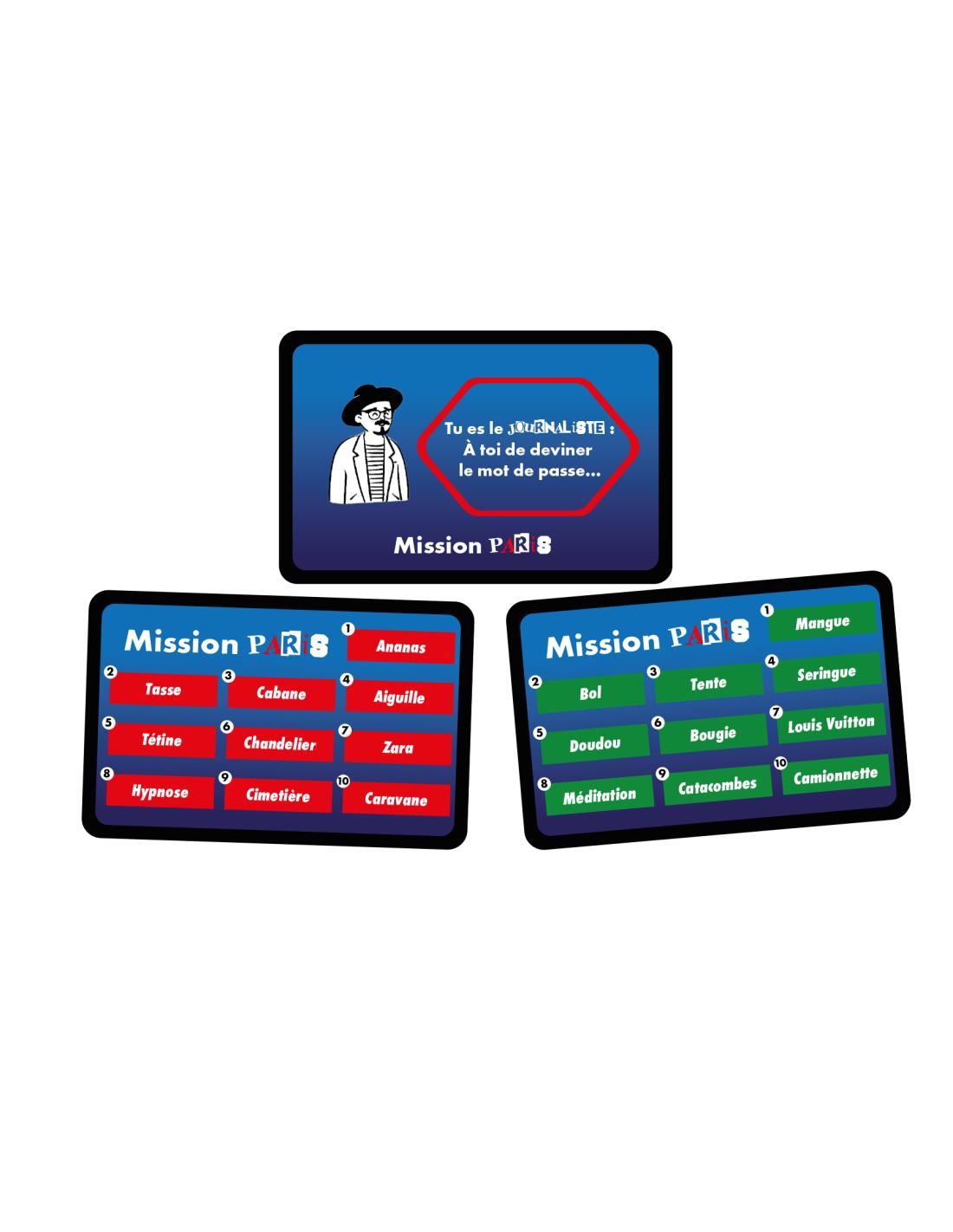 Dans une partie de Little Secret, chaque joueur dispose d’une carte mission comportant plusieurs mots de passe.
