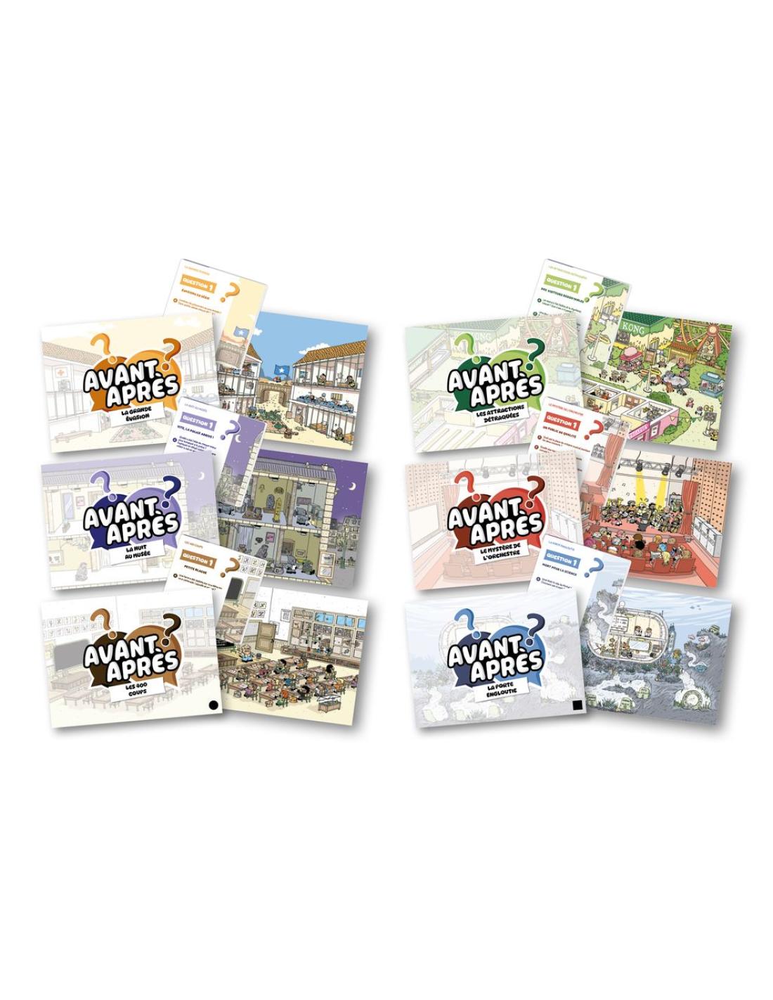 l’illustration « Avant » et l’autre reçoit l’illustration « Après » mais vous ne savez pas qui a reçu quelle illustration. Comprenez ensemble tout ce qui s’est passé entre vos deux scènes... sans jamais montrer votre illustration à l’autre groupe ! Décrivez tous les détails, prenez votre temps, et écoutez bien les autres pour répondre aux questions du livret.