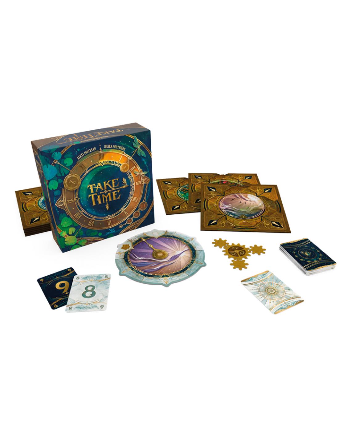 Prenez part à une aventure coopérative unique où chaque seconde compte. Dans Take Time, vous affrontez 40 horloges énigmatiques en équipe. Ouvrez l’une des enveloppes, retournez la première horloge, puis mélangez les 12 cartes Lune et les 12 cartes Soleil (numérotées de même manière) avant de les distribuer entre les joueurs. Attention, personne ne regarde ses cartes pour l’instant.