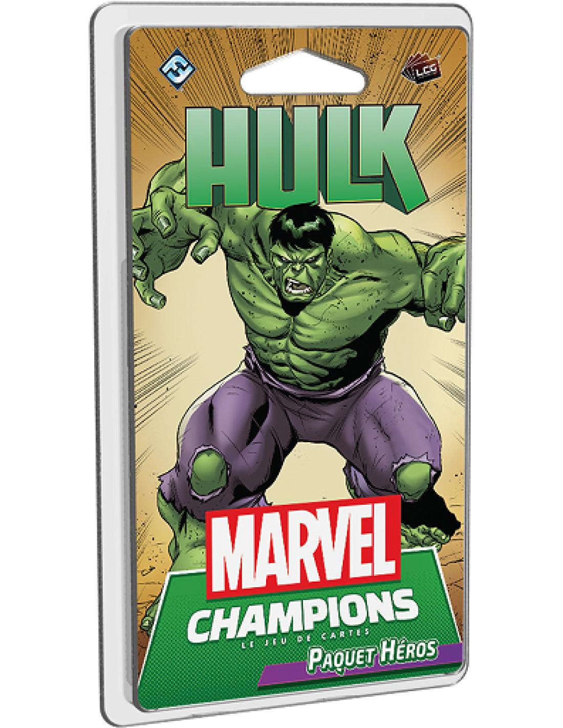Ce Paquet Héros de 60 cartes comprend : un deck pré-construit de 40 cartes pour Hulk, 30 nouvelles cartes qui peuvent être ajoutées à n’importe quel autre deck Héros et un set de Némésis mettant en scène la cruelle Abomination !