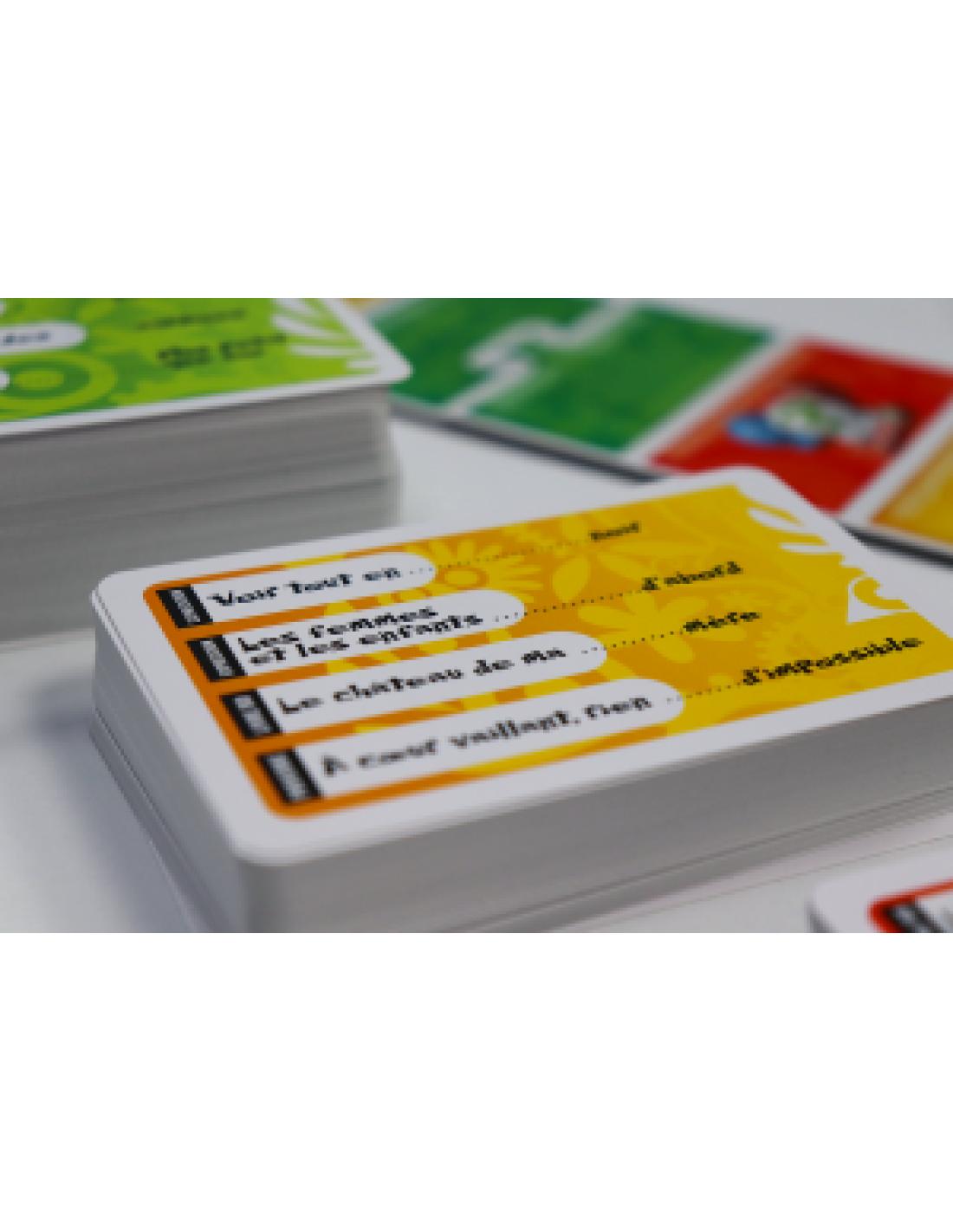 Pour chaque face de carte complétée, progressez d’une case sur le plateau. Faites attention à la case sur laquelle vous finissez votre tour : la couleur de la case définit la difficulté de votre prochain tour, et des cases Défi viendront chambouler les règles !