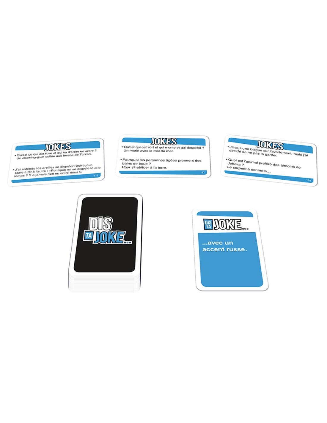 Pour dérider les joueurs trop sérieux, on ajoute les cartes «dis ta joke...». Il faut alors lire la blague de la manière inscrite sur la carte. Par exemple, dis ta joke avec l'accent chinois !