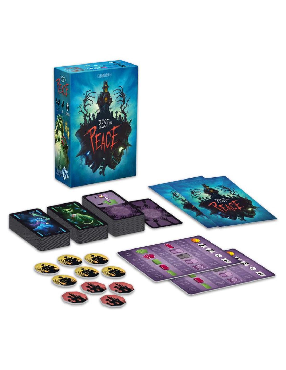 Envoyez vos fantômes hanter les châteaux et les manoirs de vos ancêtres pour en prendre le contrôle. Mais sachez lâcher prise pour obtenir les faveurs des médiums qui vous aideront à atteindre la victoire finale. Rest In Peace (R.I.P.) est un jeu de cartes tactique pour deux joueurs. Chaque joueur a une famille de 21 fantômes (cartes de 1 à 6). À tour de rôle, chaque joueur va chercher à s’emparer de jetons Demeures en obtenant la majorité sur le lieu en jeu grâce à sa main de cartes-fantômes. Pour remporter la victoire finale, un joueur doit contrôler 3 châteaux ou 4 manoirs.