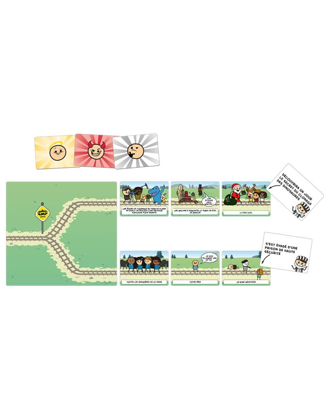 Dans ce jeu, les joueurs endossent un à un le rôle du Conducteur et dirigent le trolley afin de tuer quiconque est sur l’une des deux voies. Tous les autres joueurs placent des personnages et des Modificateurs sur les voies et tentent d’amener le Conducteur à tuer tout le monde sur l’AUTRE voie. C’est l’éternel dilemme du trolley !