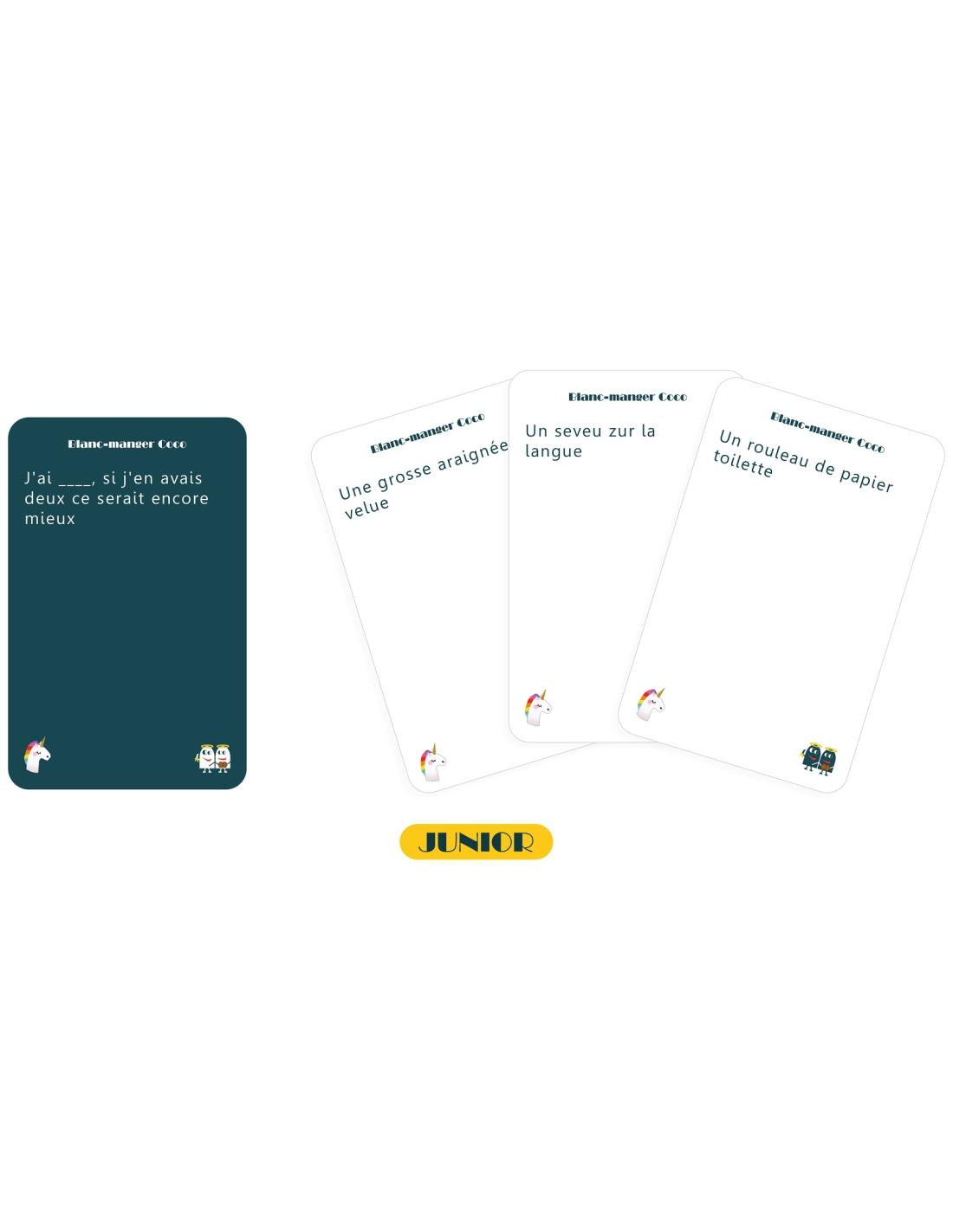 Celui qui a posé la carte formant la combinaison la plus drôle gagne la manche puis lit la carte bleue suivante et ainsi de suite. Le premier joueur à 5 points est l’heureux vainqueur !