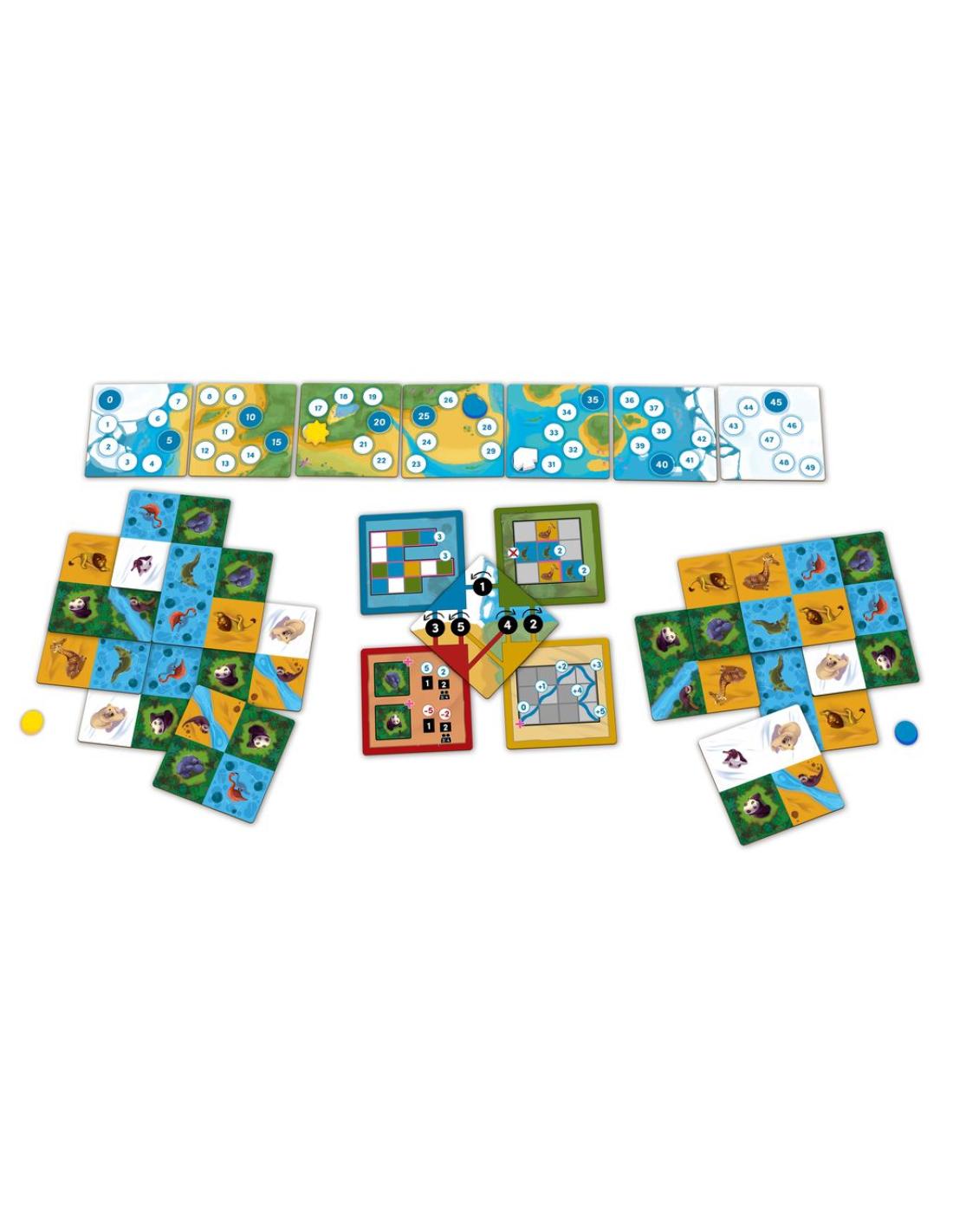 Votre objectif principal est de placer habilement les cartes animaux sur votre propre plateau personnel, en respectant différents objectifs qui évolueront tout au long du jeu. Mais attention, l'espace sur votre plateau est limité, ce qui signifie que vous devrez prendre des décisions réfléchies et parfois difficiles pour faire cohabiter les différentes espèces.