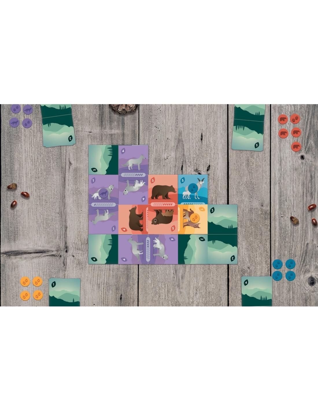 Mécanisme : Calculez bien, gérez votre main et recouvrez les cartes de vos adversaires. Bloqué ? Pas de problème, partez à la découverte dune nouvelle zone de la forêt, et soyez le premier à placer vos pions pour sécuriser votre territoire. Gare aux coups fourrés, cest chacun pour soi !