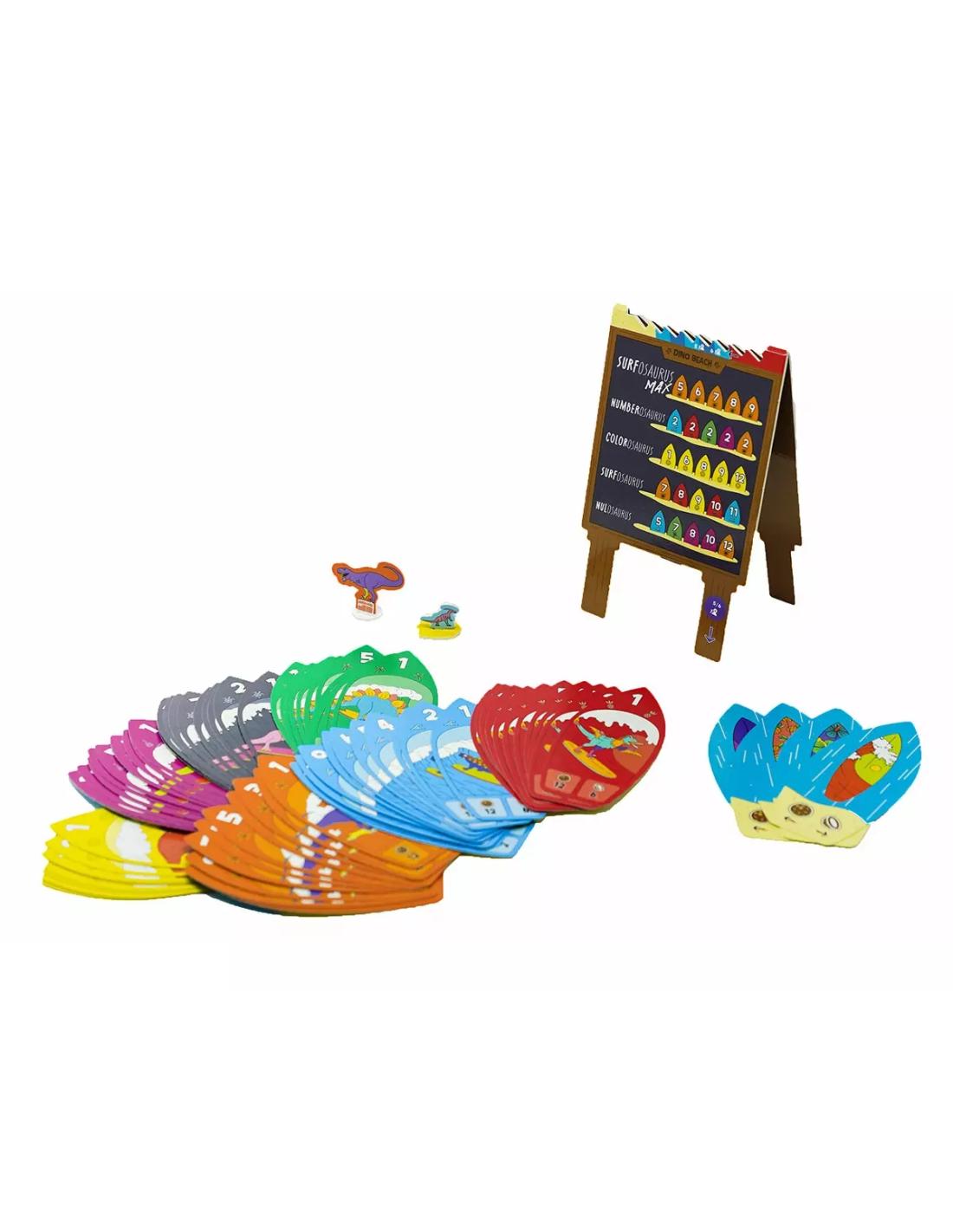 Surfosaurus Max est un jeu semi-coopératif avec 7 séries de dinos numérotés de 1 à 12. Lors d’une manche, les joueurs posent juste 2 ou 3 cartes devant eux, en tentant de sentir l’alliance la plus prometteuse... car à la fin, seules les cartes qui forment la meilleure combinaison de 4 ou 5 cartes seront gagnées ! Suspense garanti !