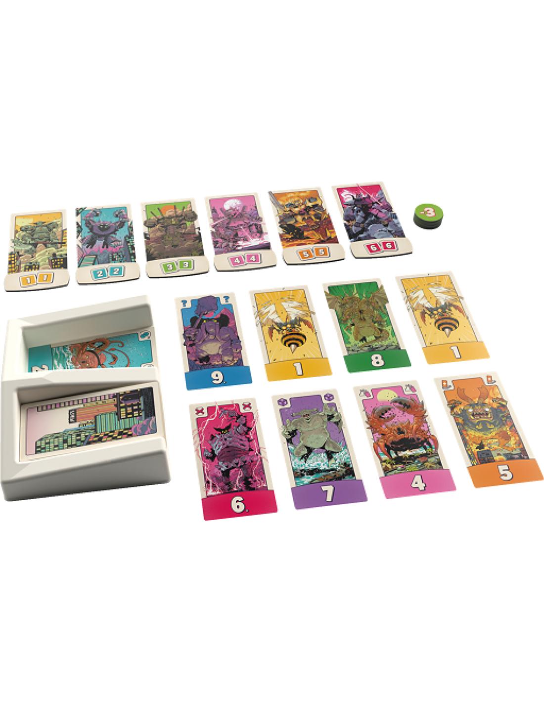 Ensuite, faites l’acquisition de nouvelles cartes selon les résultats obtenus : carte de même valeur que chaque dé, que leur total ou que leur différence. Vous avez un double ? C’est l’occasion de récupérer l’un des puissants Mecha ou de tenter de le voler à vos adversaires.