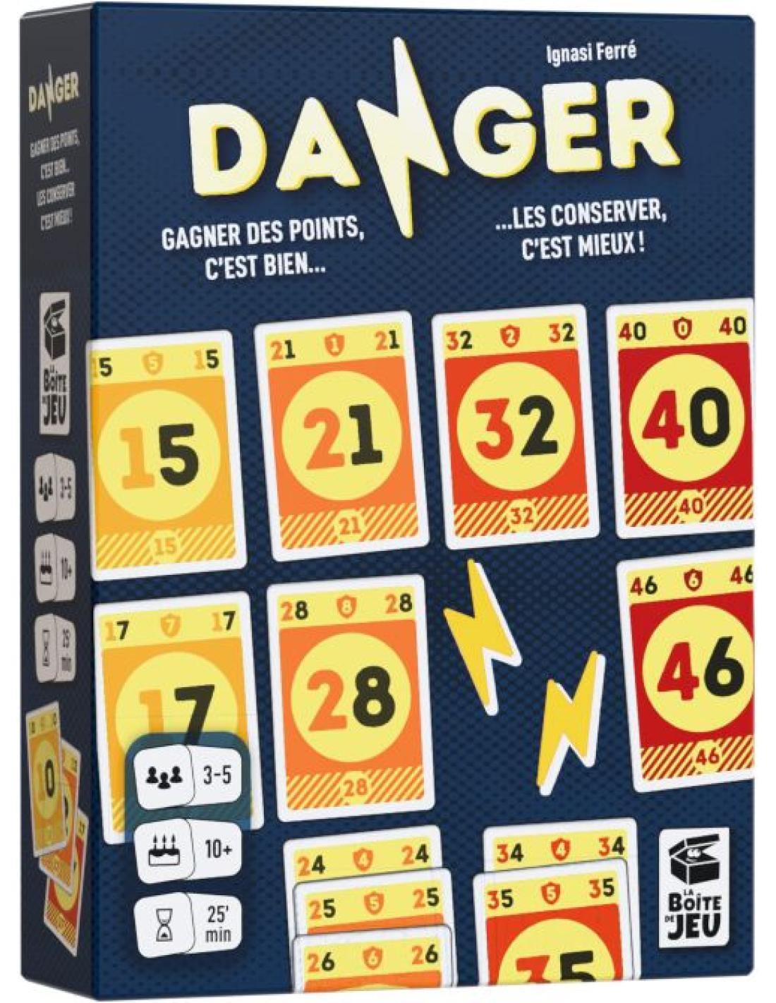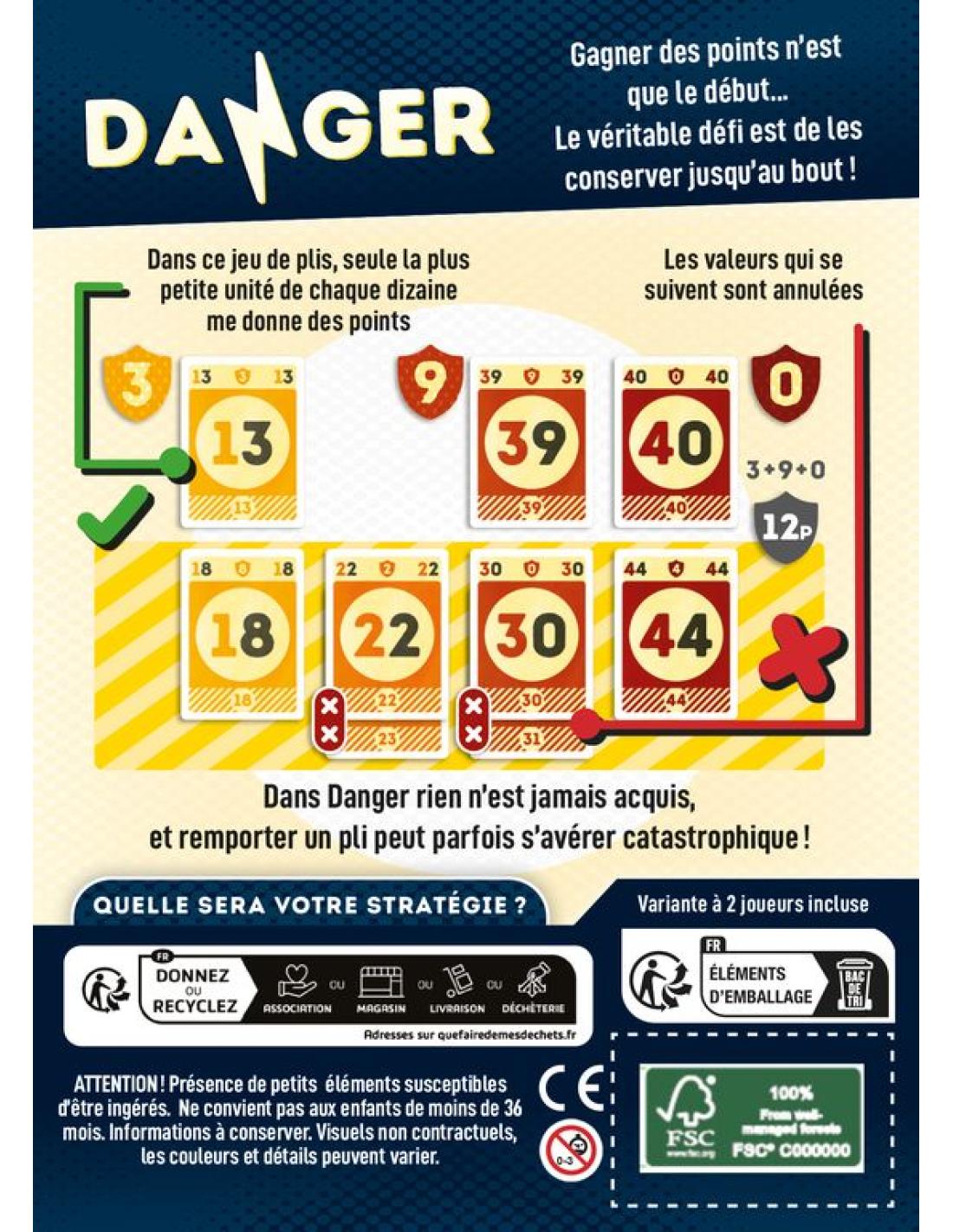 Danger est un jeu de plis dans lequel gagner des points sera simple... Mais les conserver jusqu'à la fin relèvera du véritable défi !
