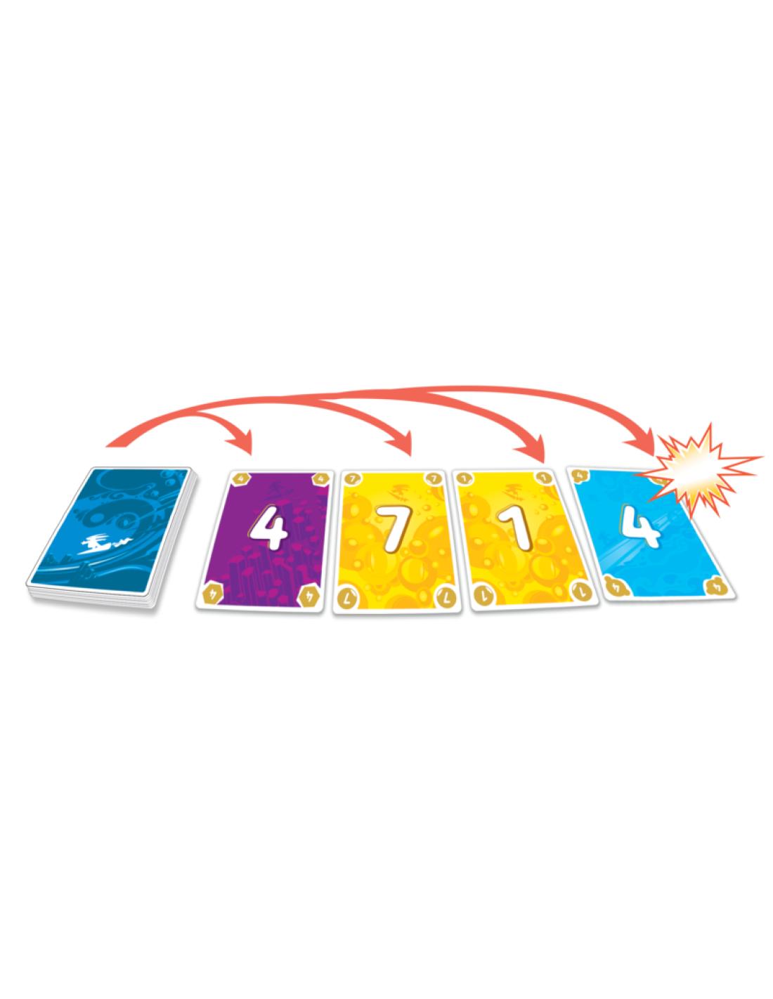 Marquez un maximum de points en créant jusqu’à trois suites de cartes devant vous. Révélez des cartes une à une pour compléter votre main... Mais arrêtez-vous au bon moment pour ne pas provoquer d’explosion. Débarrassez-vous des cartes encombrantes avant de poser vos suites pour éviter les malus !