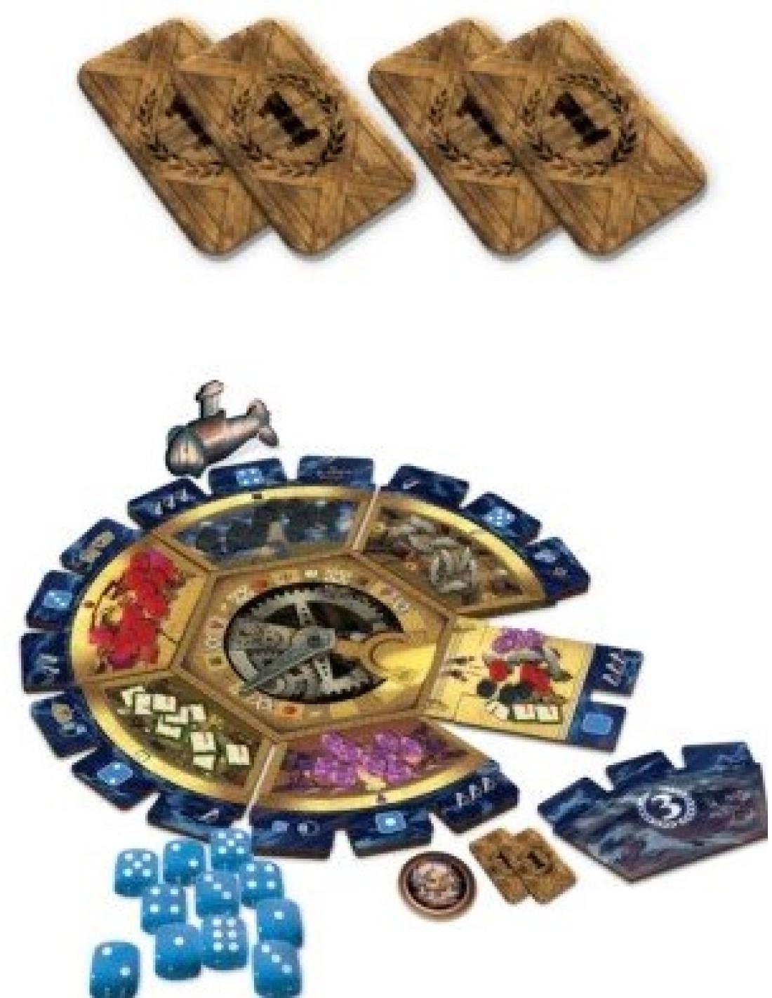Le premier joueur choisit alors un dé, prend une ressource dans le quartier correspondant et déclenche son effet, par exemple : échanger deux ressources, prendre une ressource supplémentaire ailleurs dans la ville ou déplacer le sous-marin qui vous permet de prendre plus de ressources dans le quartier où celui-ci stationne. Chaque joueur prend 1 dé puis un deuxième tour de table a lieu. En fin de manche, le dernier dé restant sur la table désigne le nombre de crans dont avance l’aiguille de l’horloge centrale. Les joueurs marquent des points de prestige s’ils sont majoritaires dans une ressource quand l’horloge s’arrête sur la case correspondante ou quand le quartier d’origine de cette ressource est vidé.