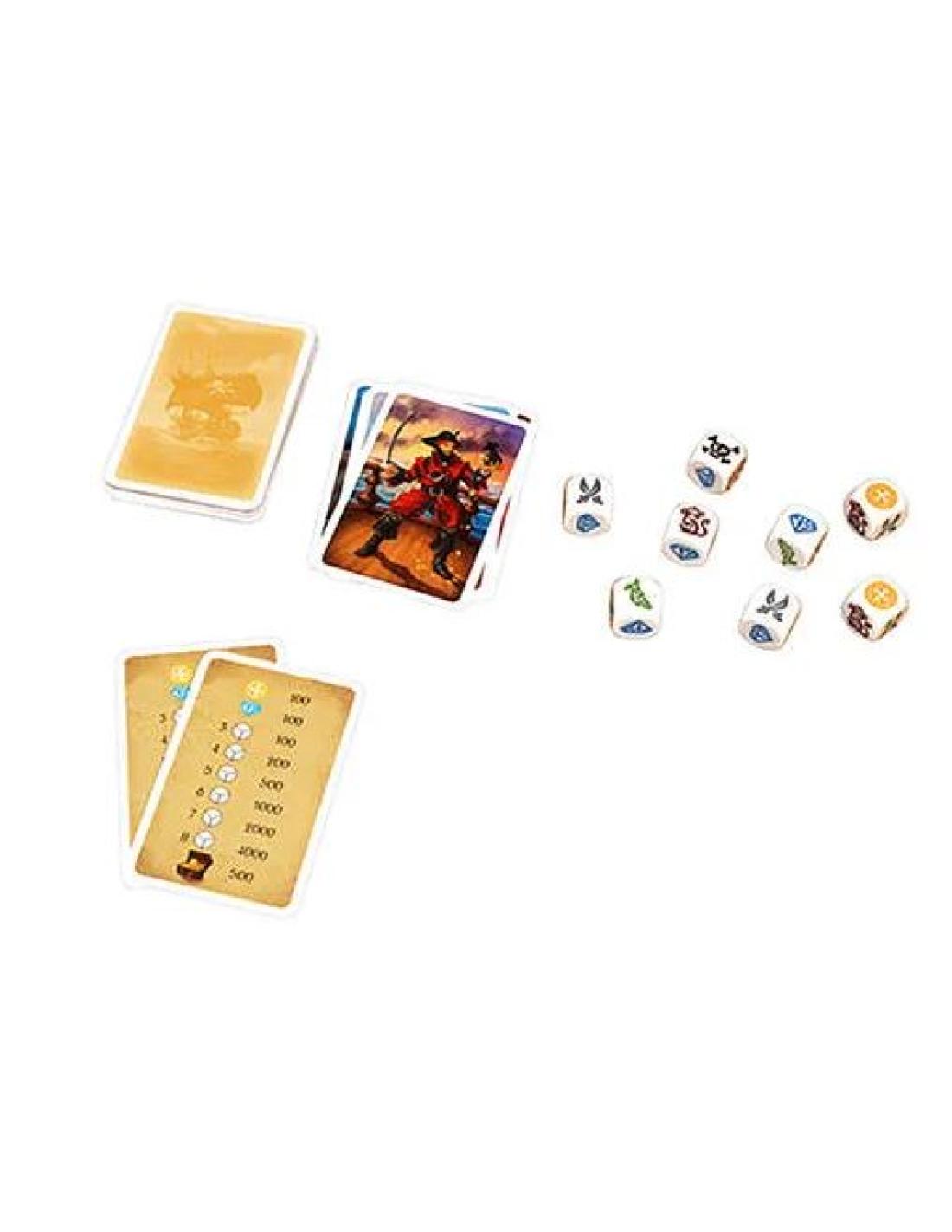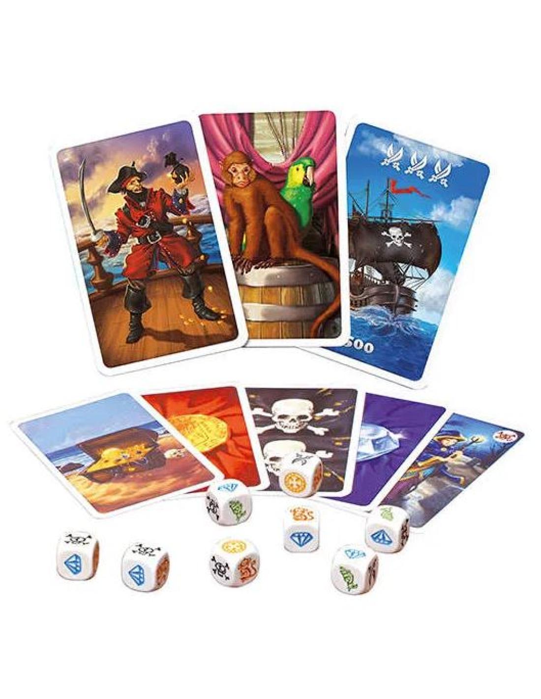 Glissez-vous dans la peau d'un vieux loup de mer et organisez des parties de dés endiablées ! A l'aide des déroutantes cartes Pirate, défiez la chance et vos adversaires pour réaliser des combinaisons de dés et marquez un maximum de points. A votre tour, révélez une carte Pirate qui va influer sur votre tirage. Puis, lancez les dés et tentez de réaliser la meilleure combinaison : vous pouvez relancer autant de fois que vous le souhaitez mais attention aux trois têtes de mort ou vous rentrerez les mains vides ! Réservé aux pirates qui n'ont pas froid aux yeux !