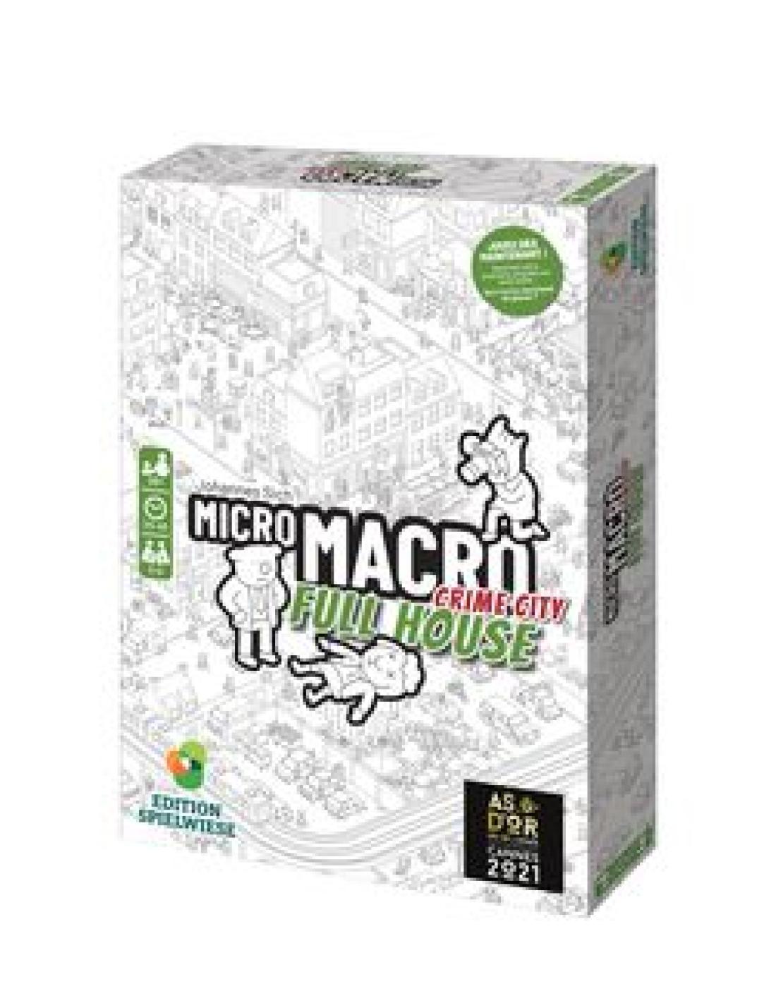 Full House est le second volet de la série MicroMacro : Crime City. C‘est une nouvelle partie de la ville, avec ses 16 enquêtes à mener, qui vous ouvre les bras. Ce jeu est indépendant du premier volet : il n‘est pas nécessaire de posséder ou d‘avoir joué à l‘épisode précédent pour vous lancer dans ces nouvelles affaires ! MicroMacro est un jeu coopératif. Un oeil affûté et un sens de la déduction aiguisé seront vos meilleurs atouts pour coincer ensemble les criminels les plus retors !