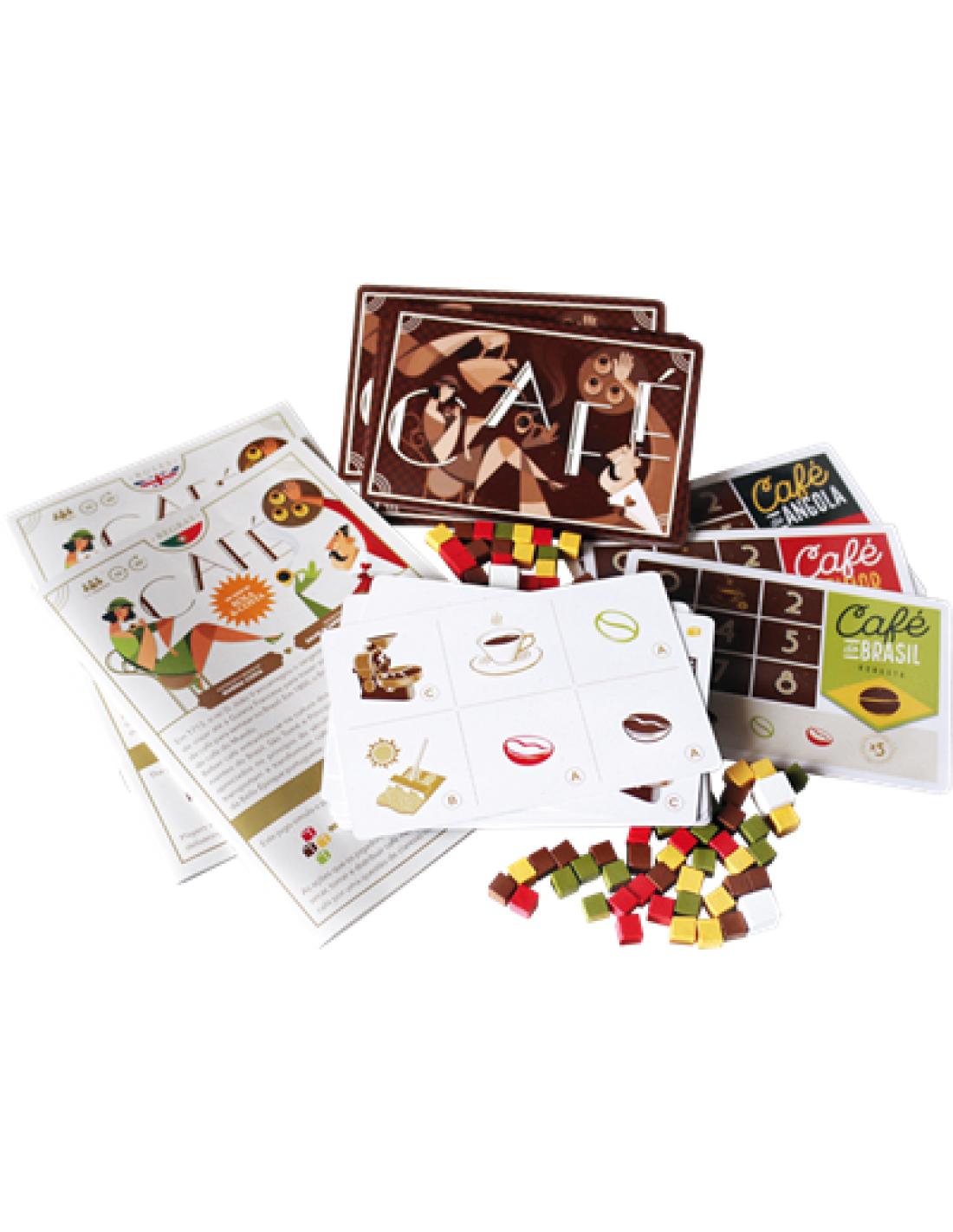 Café est un jeu de stratégie qui prend le parti de nombreuses mécaniques différentes (pose de tuiles, de cartes, d’ouvriers, pick-up and deliver, etc.) pour offrir une richesse de jeu incroyable. Chaque axe de progression est à prendre en compte et aucun, seul, ne garantit la prospérité de votre entreprise !