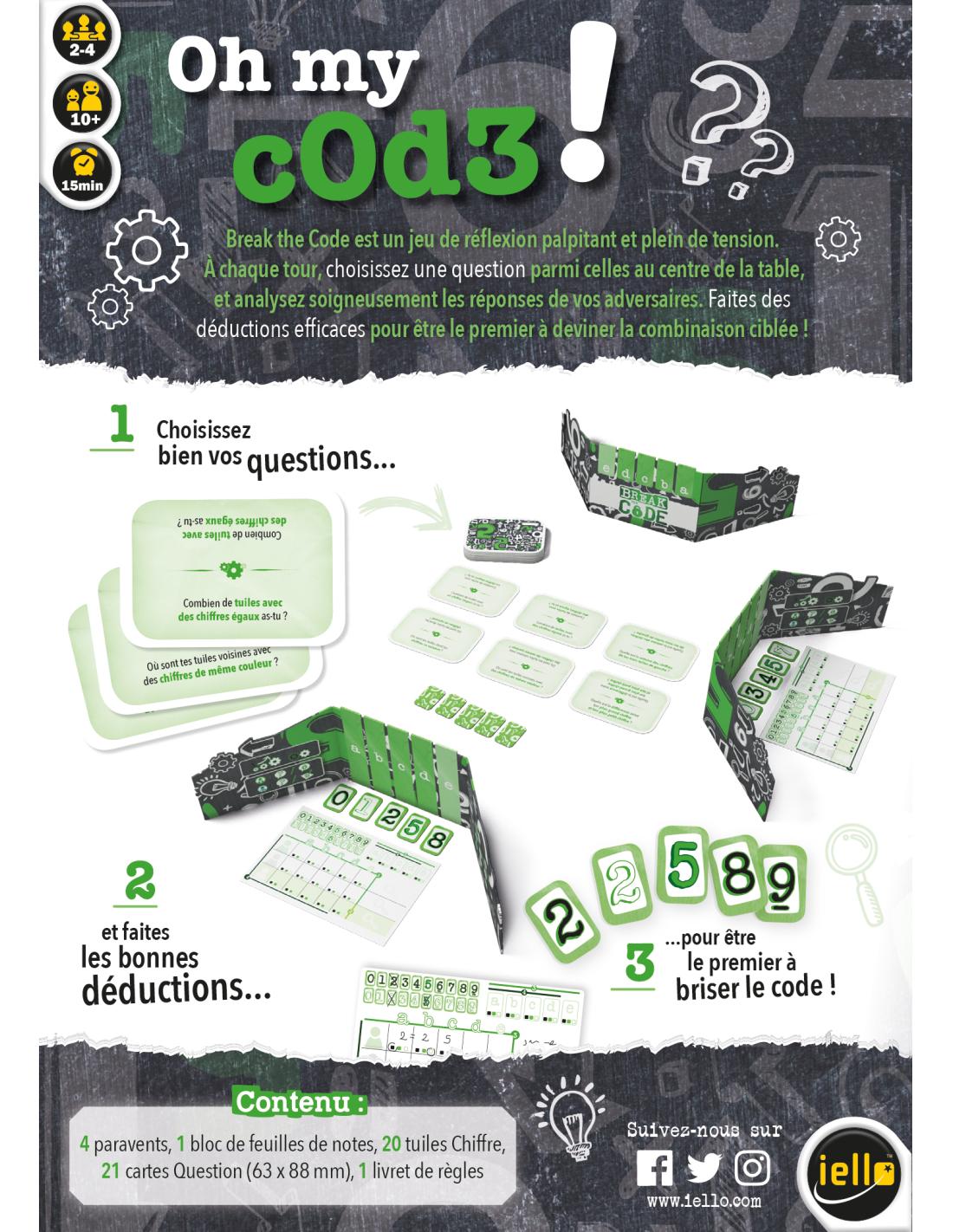 Le code, c’est une suite de chiffres que chaque joueur dissimule derrière son paravent. Pour le trouver, il faut poser les bonnes questions et éviter de dévoiler son jeu ! Le gagnant sera le plus malin... ou le plus audacieux.