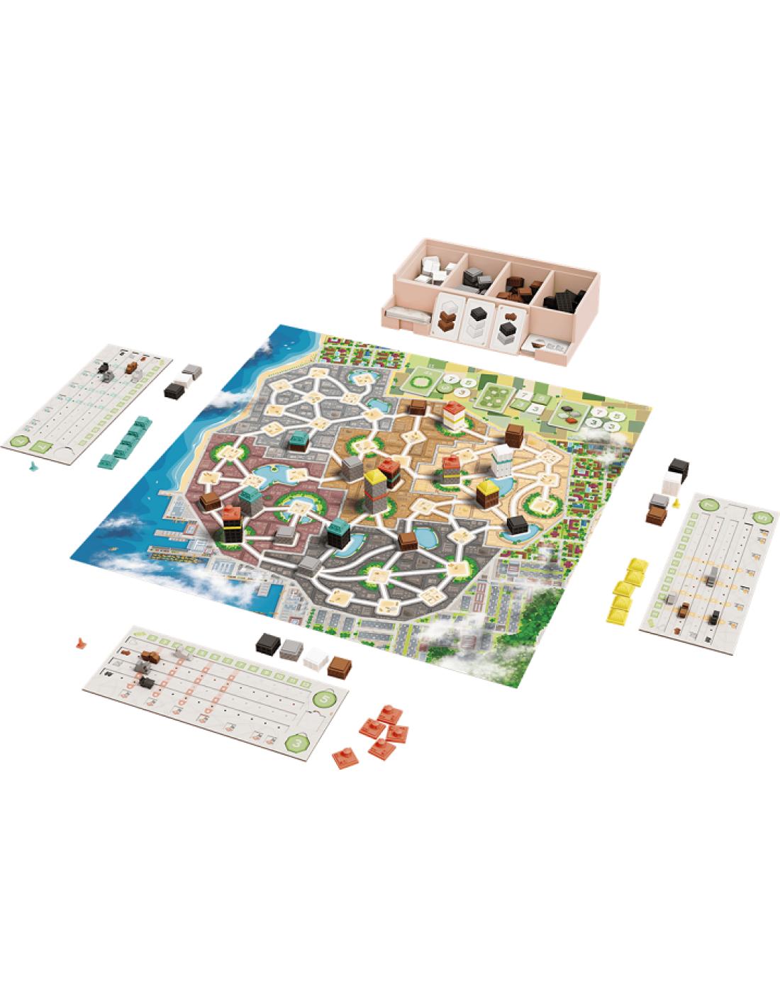 À chaque tour de jeu, prenez une carte et les matériaux qui y sont indiqués ou construisez une nouvelle tour. Pour cela, posez une base sur une intersection vide, en prenant garde que cet emplacement ne soit pas adjacent à un immeuble de la même couleur. Ensuite, posez un étage sur chaque autre bâtiment adjacent (en respectant les couleurs), puis posez un de vos toits sur l’un de ces bâtiments. Ce faisant, essayez de remplir les objectifs, avancez vos marqueurs de score et bloquez vos adversaires autant que possible. Le joueur qui cumule le plus de millions en fin de partie est déclaré vainqueur.