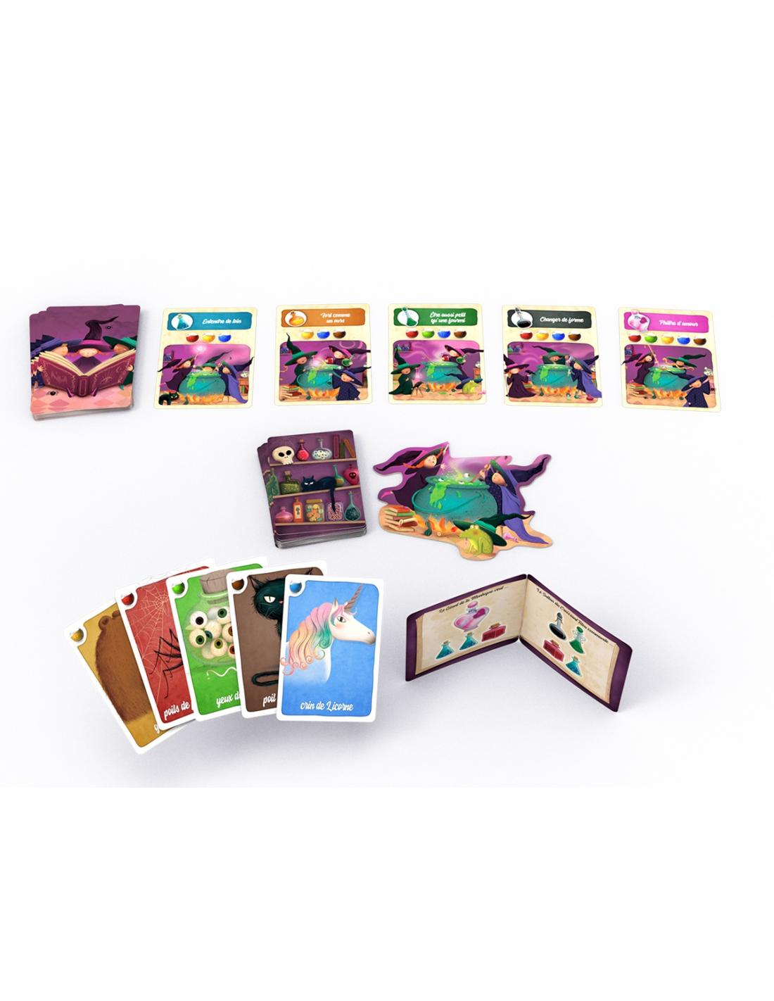 Chaque joueur choisit un manuel de sorcellerie qui lui donne le choix entre 2 «contrats» à remplir. Il faudra obtenir toutes les potions de l’une ou l’autre page.