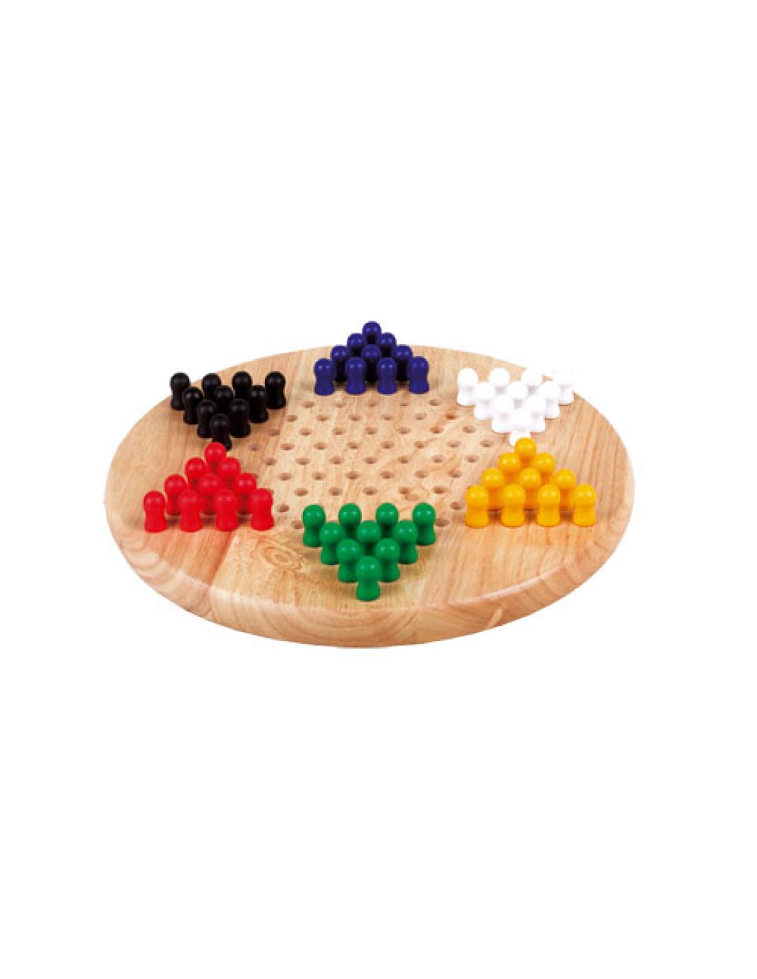 Les pions sont disposés dans les six triangles extérieurs d'une étoile à six branches, formant six groupes de dix pions, et permettant de jouer à deux, trois, quatre, ou six joueurs à la fois. Chaque groupe a une couleur différente. À deux ou trois joueurs, on peut jouer avec des groupes de quinze pions.