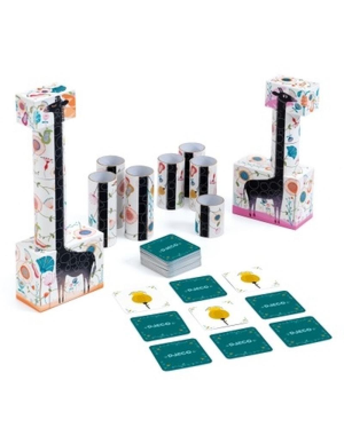 Jeu d’adresse et de mémoire. Pour être la plus grande des girafes, il faudra d’abord gagner des portions de cou en retrouvant des paires ou des brelans de fleur, puis les superposer délicatement les uns sur les autres. Attention : si tout s’écroule, il faut vite reconstruire !