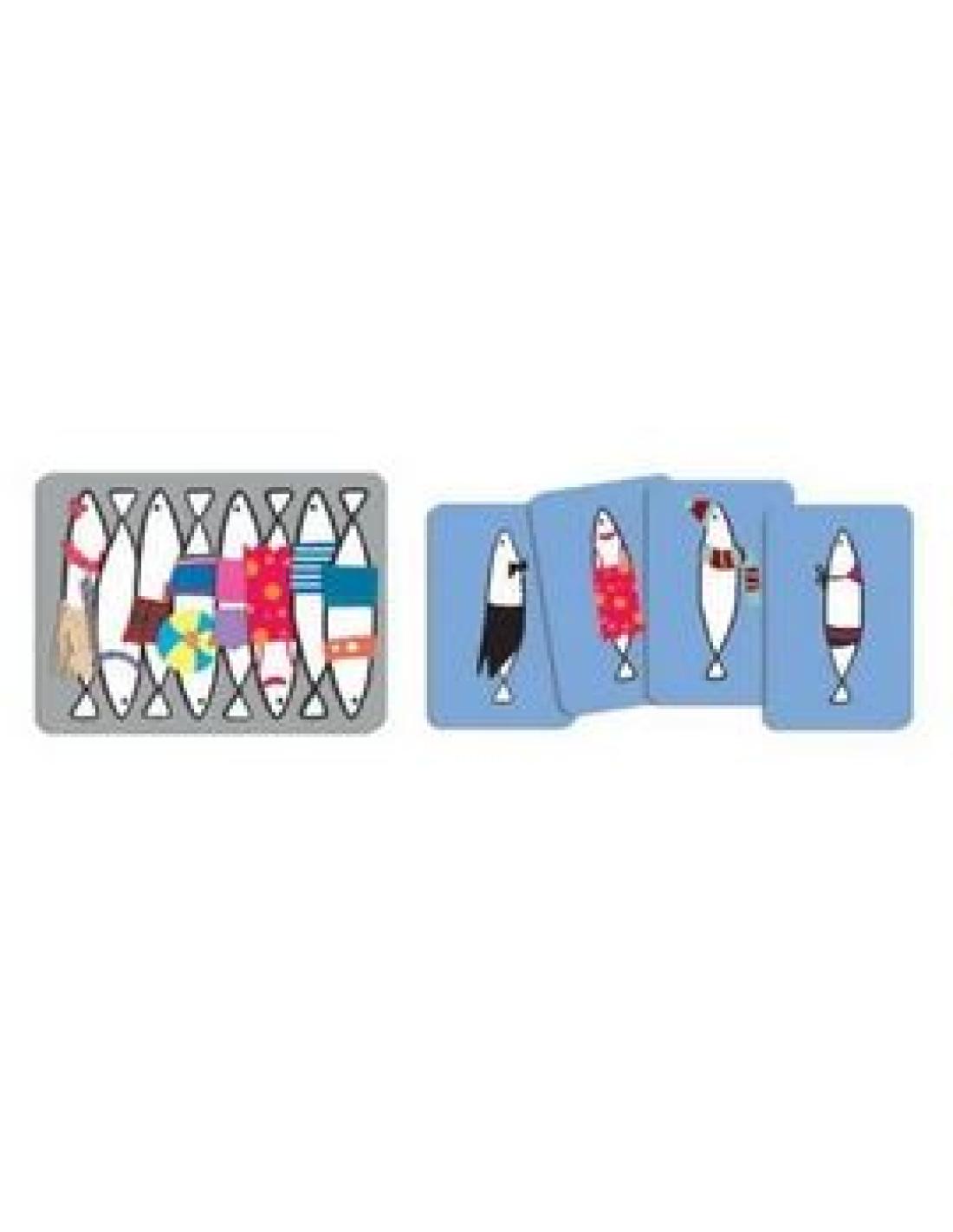 Robe, costume, chapeau, écharpe, maillot de bain… les sardines ont revêtu leurs plus beaux atours pour aller danser en boite. Un jeu de mémoire sympathique où les joueurs doivent reconnaître dans leurs cartes les sardines habillées de la même façon que celles de la boîte. Lorsque la pioche est épuisée, le joueur avec le plus de cartes gagne la partie.