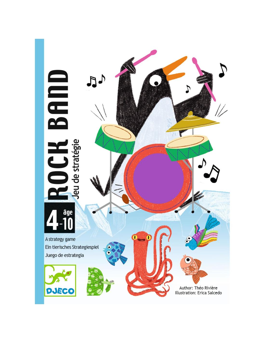 Le festival de la « mouette rockeuse » approche ! Guitariste esseulé, soyez le plus rapide à convaincre les meilleurs musiciens de vous rejoindre pour former un groupe ! Un indice : ils sont gourmands ! Collecter ou dépenser des poissons ? Telles sont les décisions à prendre pour être le 1er à constituer son groupe de 4 musiciens composé d’un batteur, d’un bassiste, d’un chanteur et d’un clavier.
