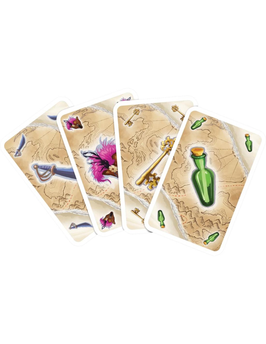 Pour déplacer un pirate, vous devez jouer une carte portant l’un des six symboles, et déplacez l’un de vos pirates vers le prochain symbole correspondant dans le tunnel, en sautant par-dessus ceux où un autre pirate se trouve déjà. Pour obtenir de nouvelles cartes, reculez vers la première case qui contient un ou deux pirates.