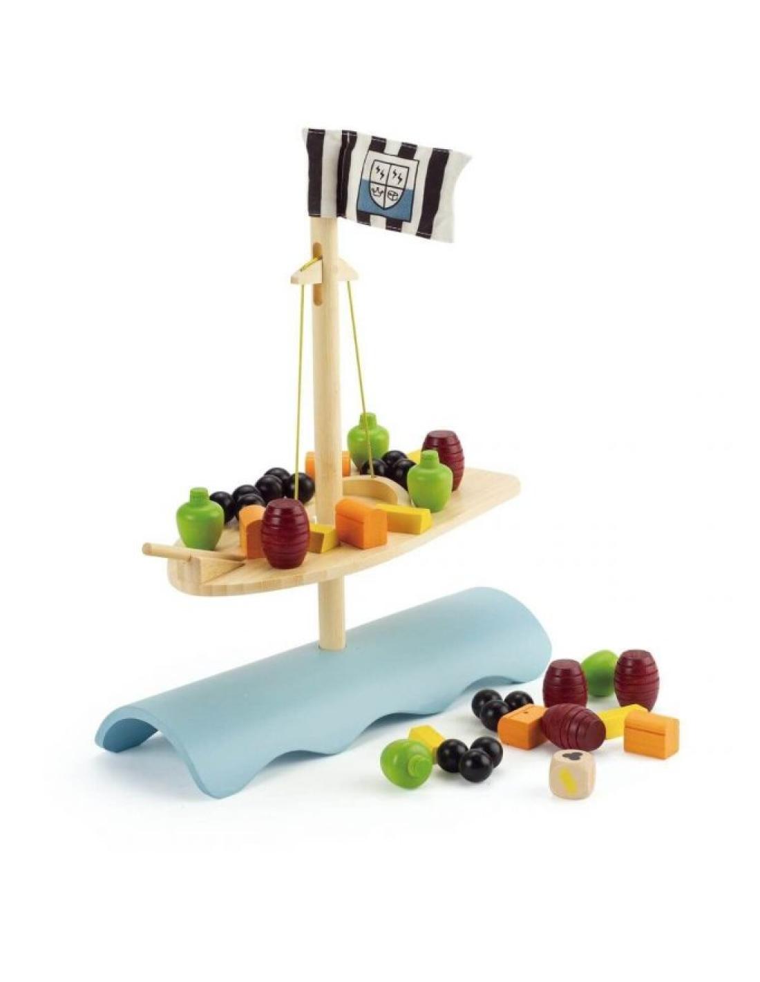 Tu lances le dé, tu regardes bien l' image affichée sur le dé et tu positionnes l'objet sur le bateau sans le faire tomber.