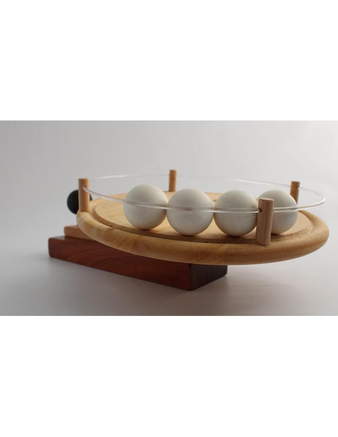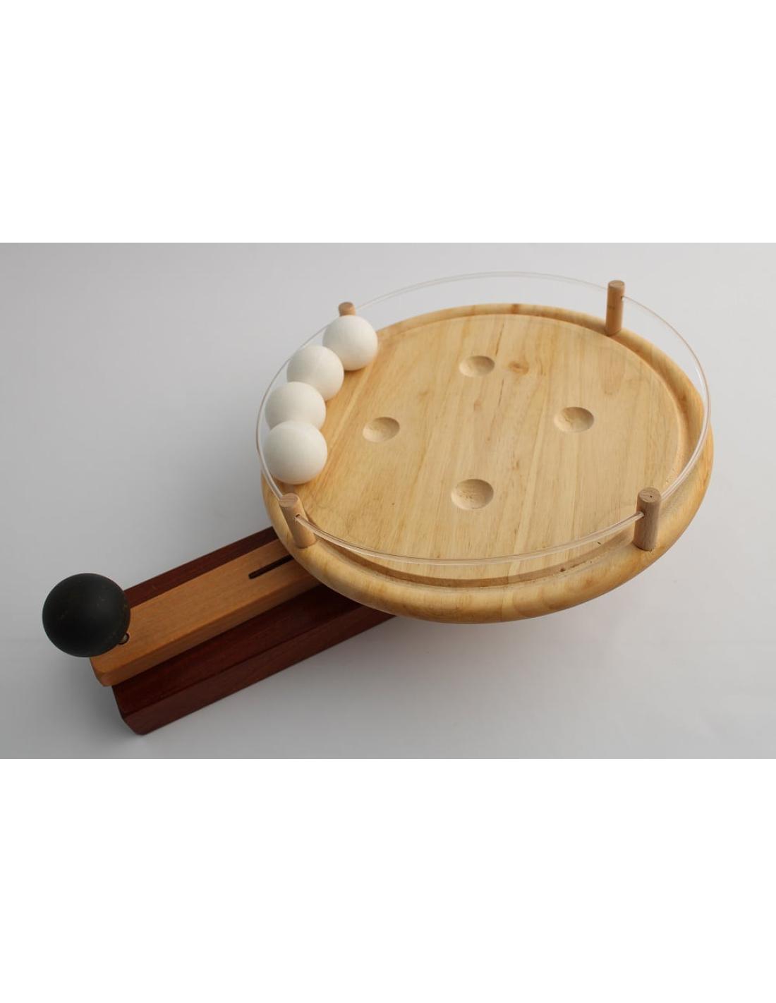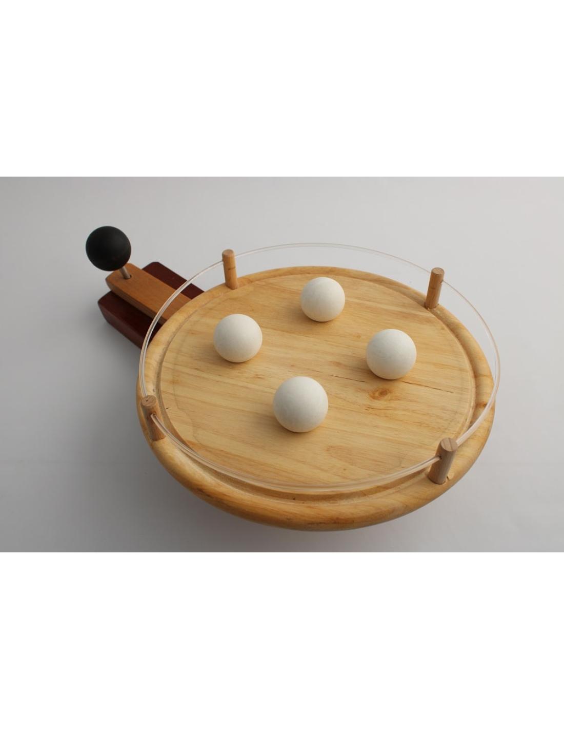 Quatre boules à placer, à l'aide de la poignée, dans les quatre trous du plateau.