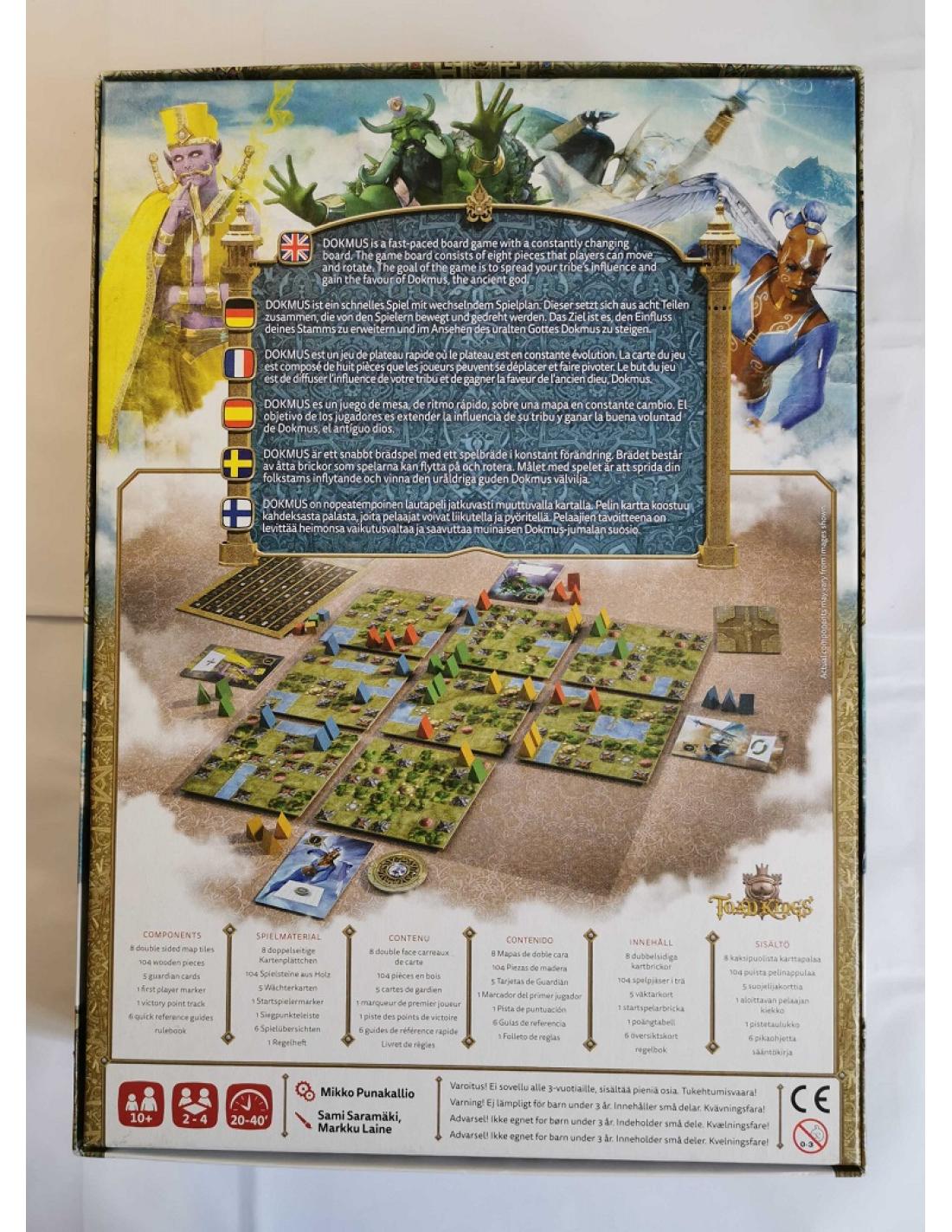 Dokmus est un jeu rapide où le plateau est en constante évolution. Il est composé de huit pièces que les joueurs peuvent déplacer et faire pivoter.