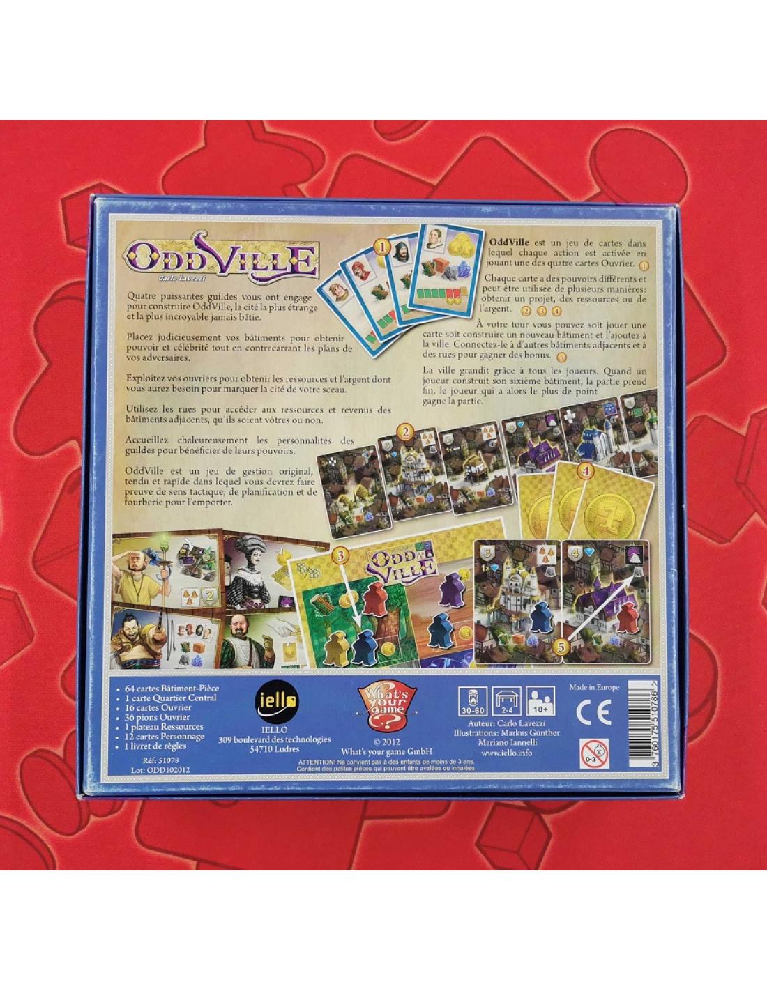 Utilisez au mieux vos ouvriers afin de récupérer des projets de construction et les ressources nécessaires à leur réalisation. Choisissez et placez vos bâtiments avec soin pour accroître votre pouvoir et votre renommée tout en contrariant les plans de vos adversaires. Dessinez les rues d’OddVille afin de profiter des ressources ou de l’or des bâtiments voisins, même s’ils ne vous appartiennent pas. En construisant les bons bâtiments, vous vous attirerez les faveurs des différentes guildes, dont les membres vous aideront dans votre tâche. Mais rien n’est gravé dans le marbre et ils n’hésiteront pas à vous abandonner si vos adversaires les flattent à leur tour.